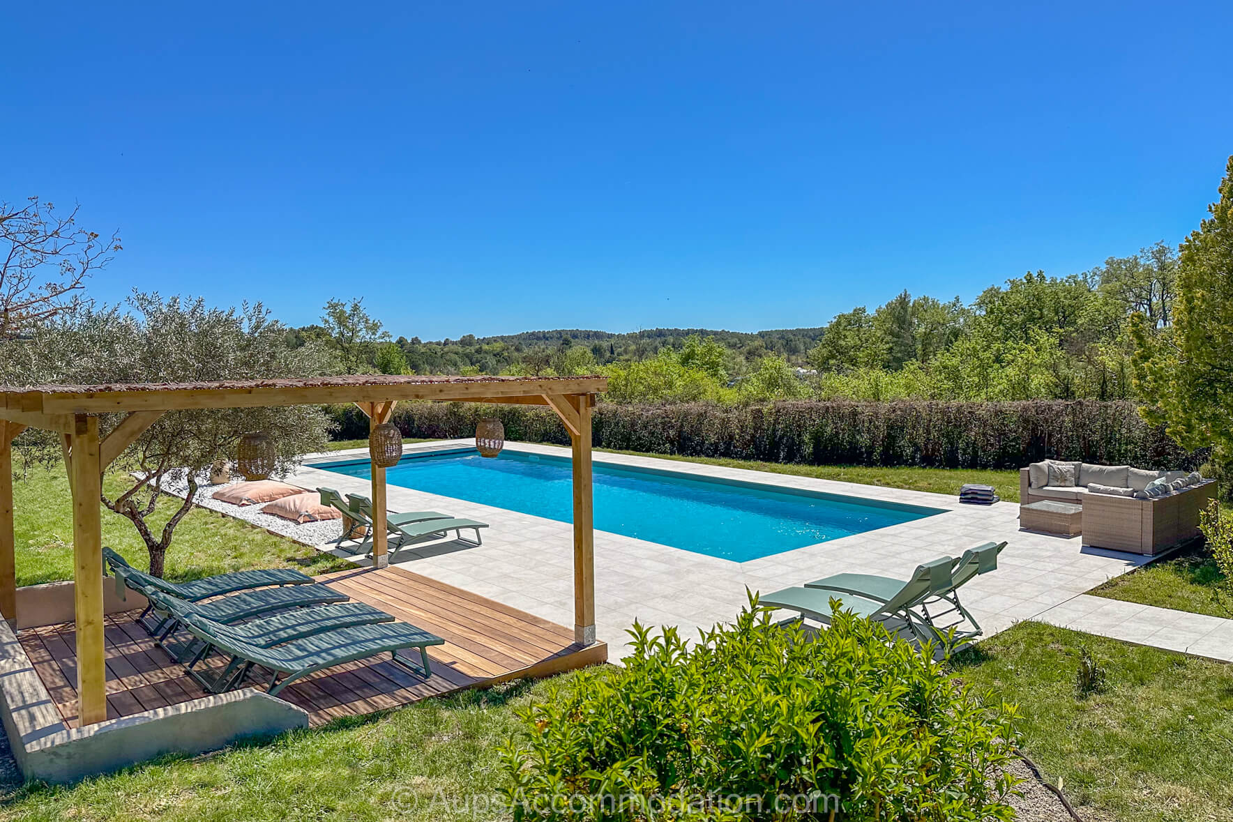 "Aups est notre destination habituelle, mais cette année nous avions besoin d'une maison plus grande car une famille élargie nous a rejoints. La maison est magnifique, l'emplacement est idéal pour se rendre à pied à Aups pour les restaurants. La piscine est fabuleuse ! Dans l'ensemble, la maison est propre, bien décorée et bien équipée et nous recommanderions à quiconque de séjourner ici. C'est l'une des meilleures maisons de vacances dans laquelle nous avons séjourné."
