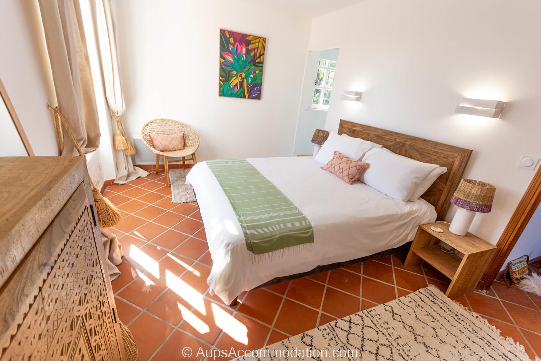 Les cinq chambres conçues individuellement ont été meublées dans un style provençal moderne, avec une nouvelle injection de tissus aux couleurs vives et de draps blancs frais. Les chambres conservent à nouveau le sol en terre cuite d'origine avec des tapis pour plus de confort. Les 4 chambres principales offrent également des unités de climatisation à commande individuelle avec des réglages de ventilateur et de chauffage en option pour offrir une flexibilité pour les séjours d'été et d'hiver. Il y a 3 salles de bains nouvellement équipées et un total de 4 WC. Toutes les chambres sont équipées de volets traditionnels ainsi que de rideaux.