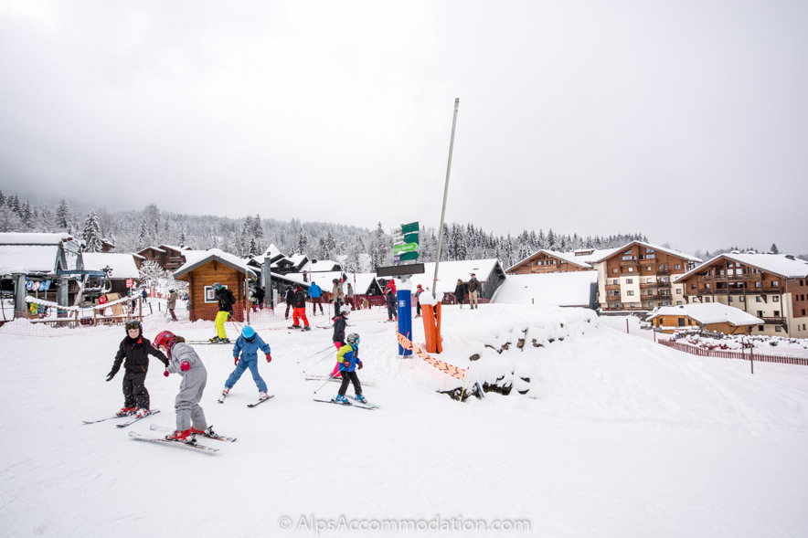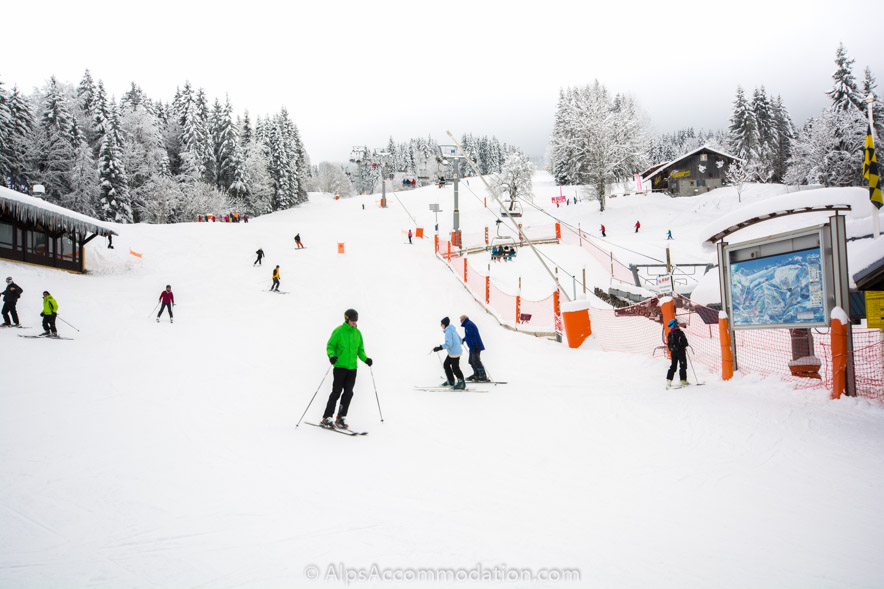 On trouve les commerçants de cette charmante station de ski à deux pas : boulangerie, location de ski, et restaurants. C’est une situation idéale pour des vacances relaxantes et paisibles, à l’année. En été, on accède facilement aux sentiers de randonnées et aux forets du Grand Massif.