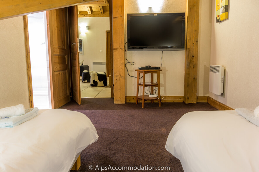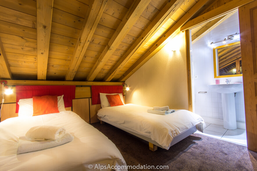 Loge 2, salle de bains (douche, WC), 2 x lit simple