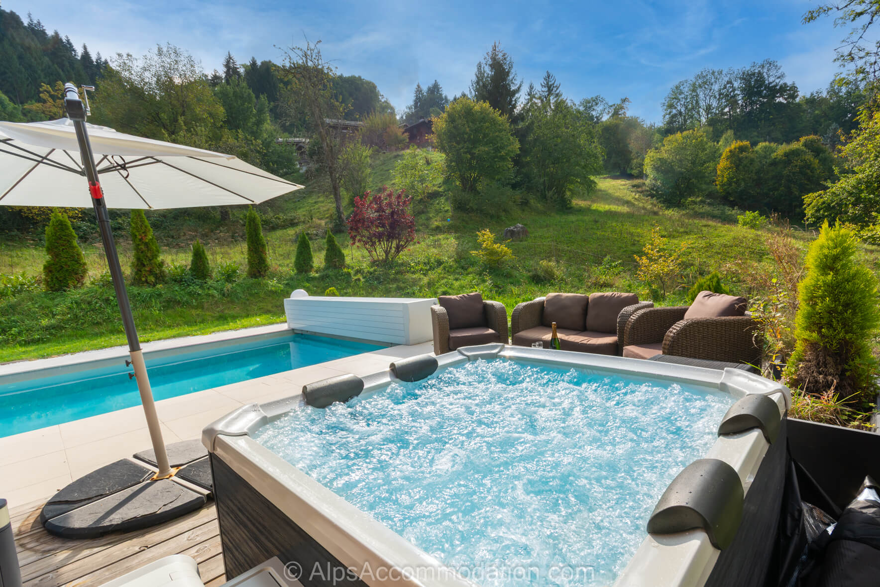 Une piscine privée de 9x4m est à votre disposition (disponible de mai à octobre) dans le jardin du chalet, et un bain à remous est disponible toute l'année à partir de décembre 2025.