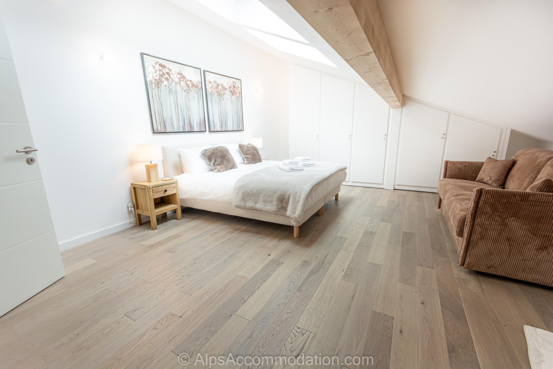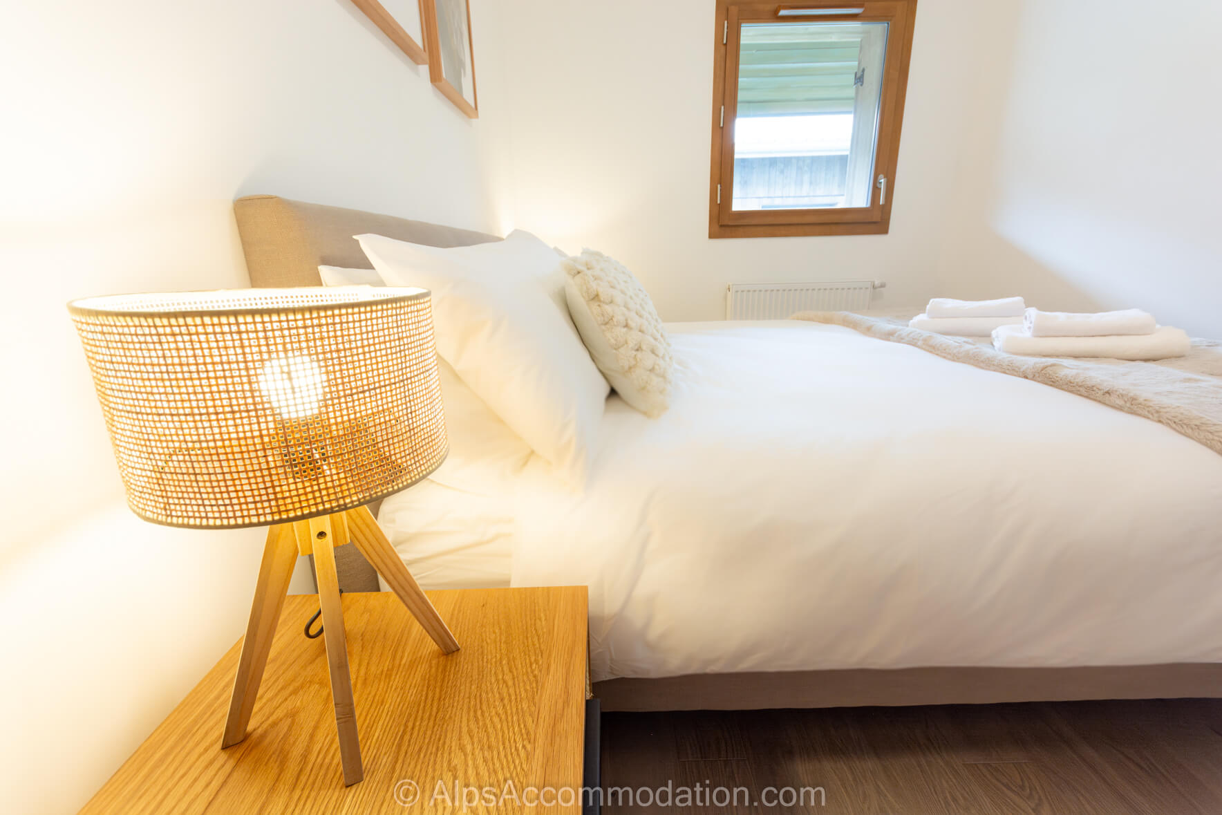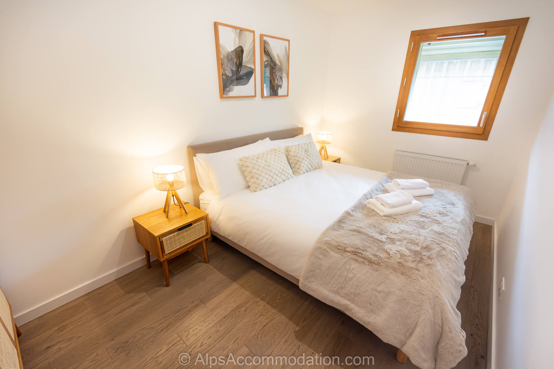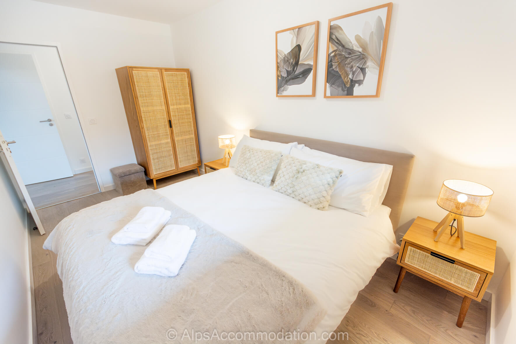 Au niveau inférieur, la chambre 3 est une autre chambre remarquable avec un élégant lit super king-size. Une armoire offre un bon espace de rangement.