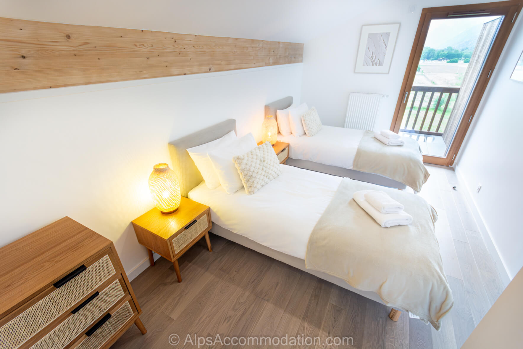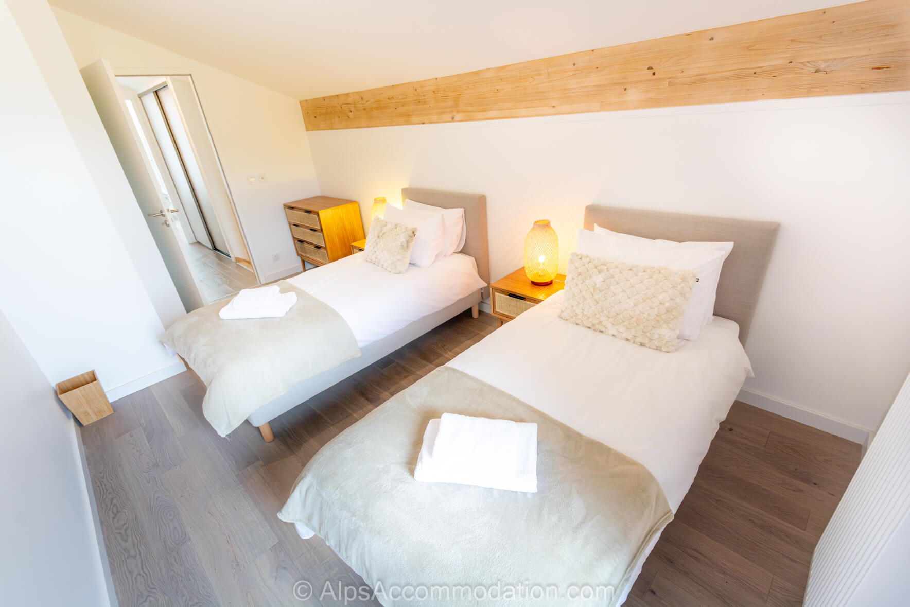 La chambre 2 est une chambre à deux lits (qui peuvent être transformés en un lit super king-size sur demande). Lumineuse et joliment meublée avec son propre balcon privé orienté à l'ouest, elle offre des vues incroyables. Une armoire à tiroirs offre un bon rangement.