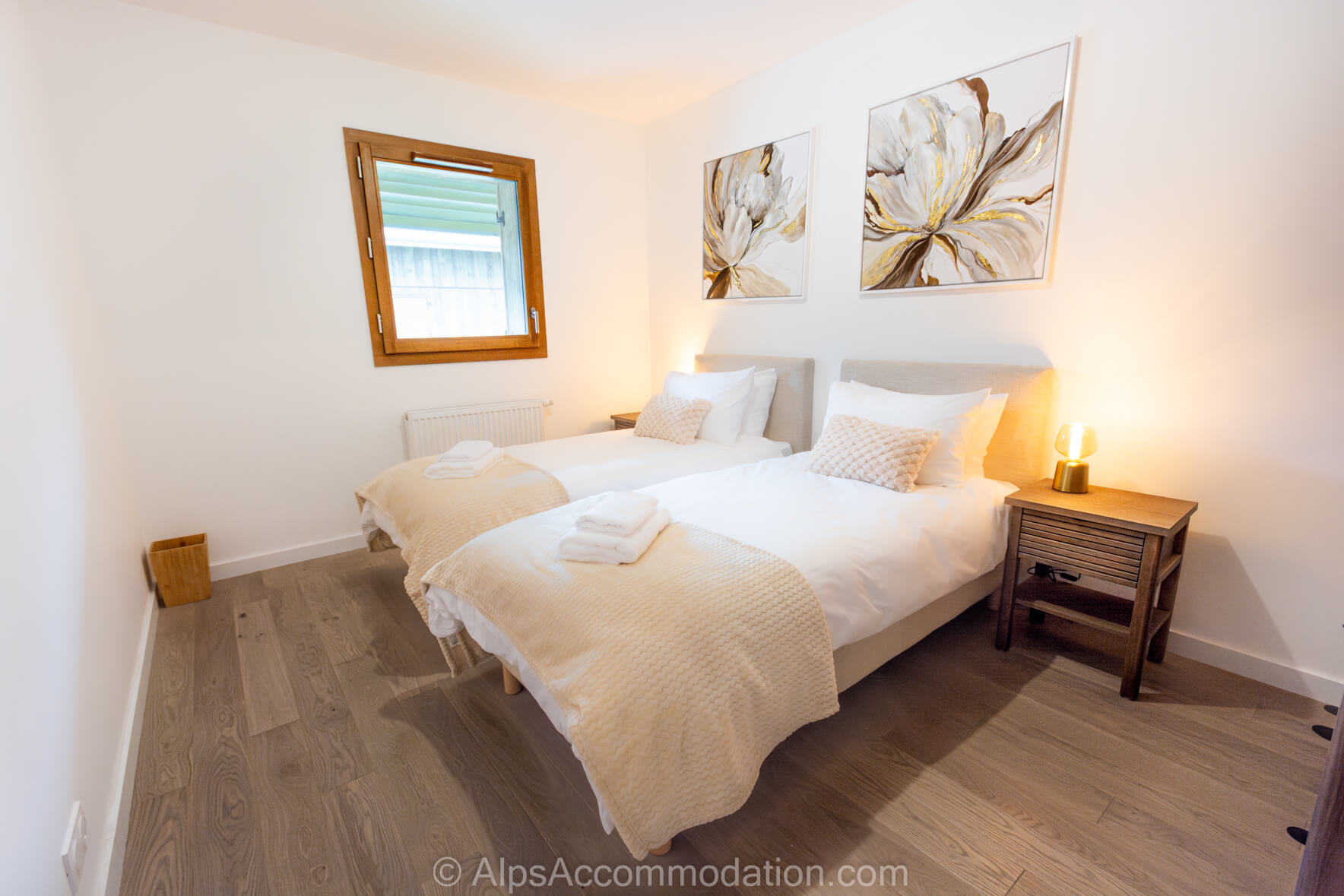 La chambre 4 est une chambre à deux lits (pouvant être transformés en un lit super king-size sur demande), spacieuse et confortable, avec des œuvres d'art florales uniques, et une armoire offrant un bon espace de rangement.
