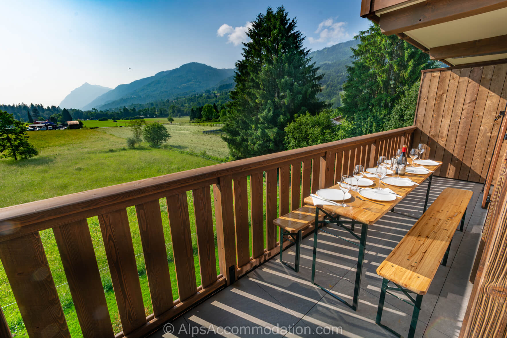 Cet appartement dispose d'un balcon privé orienté à l'ouest, accessible depuis le salon principal. Grâce au mobilier d'extérieur fourni, c'est l'endroit idéal pour les repas en plein air ou pour simplement profiter du soleil des Alpes. Depuis ce point de vue élevé, vous pourrez profiter d'une vue imprenable sur les sommets et les vallées environnants, y compris le spectaculaire Pic du Marcelly (2002m).