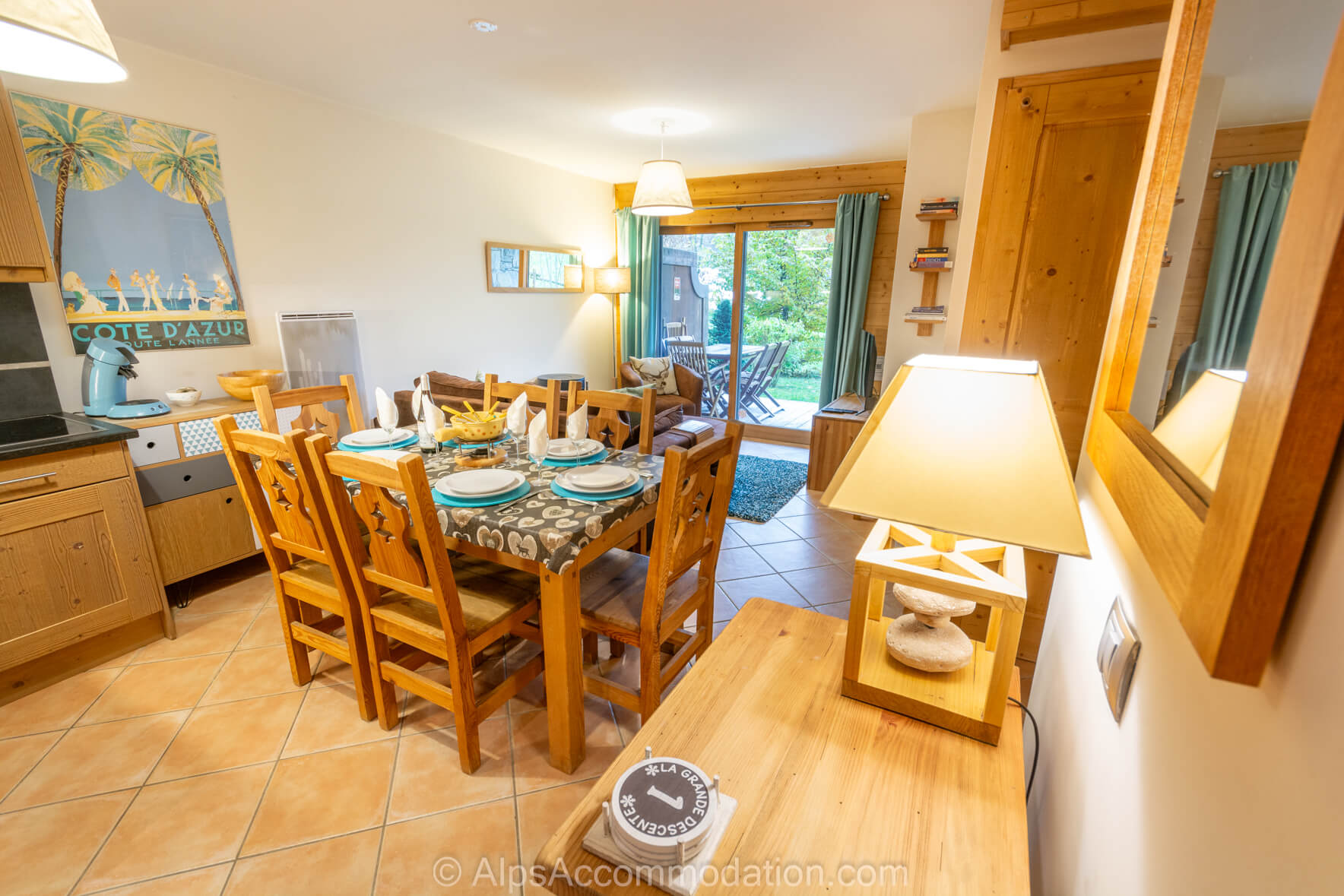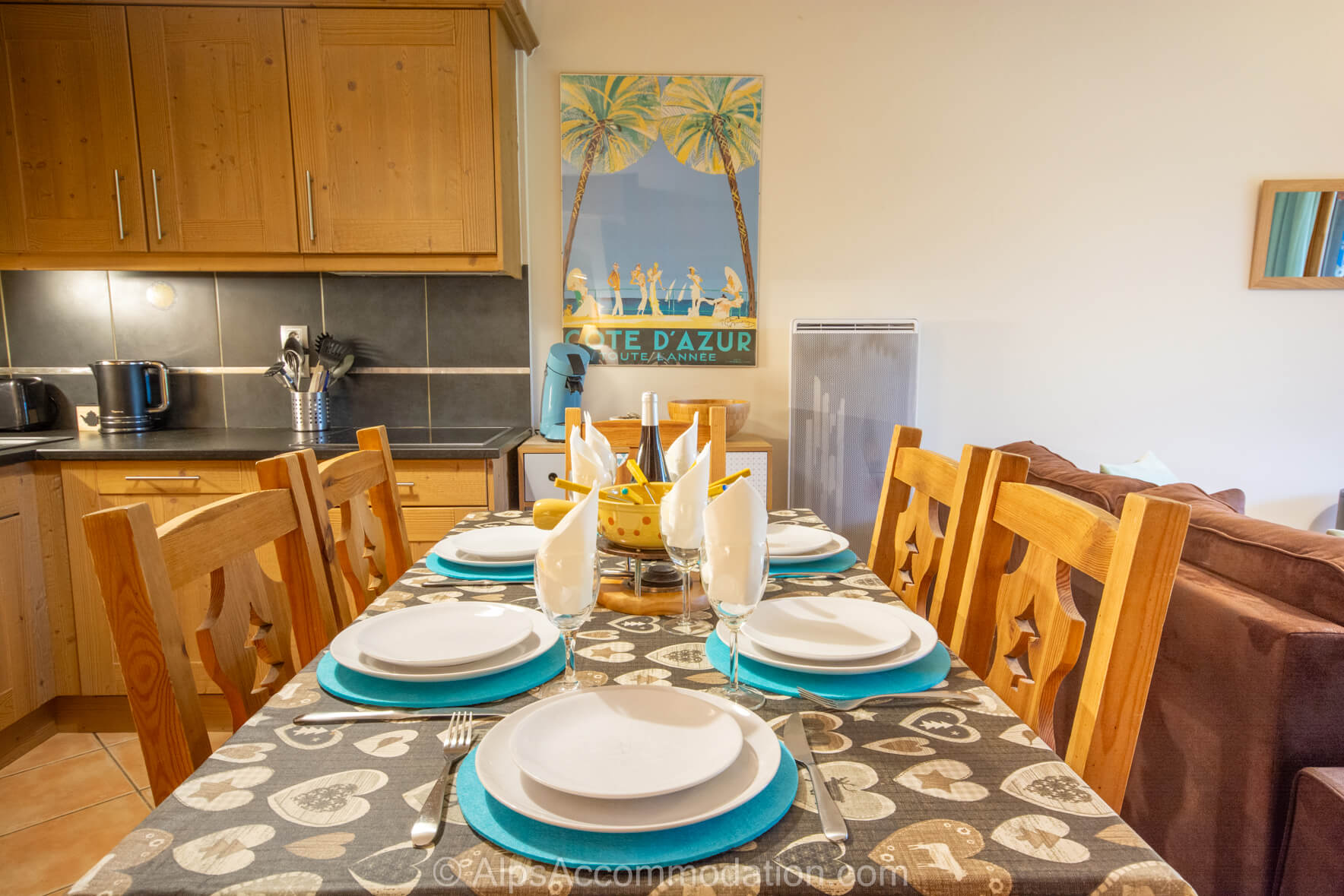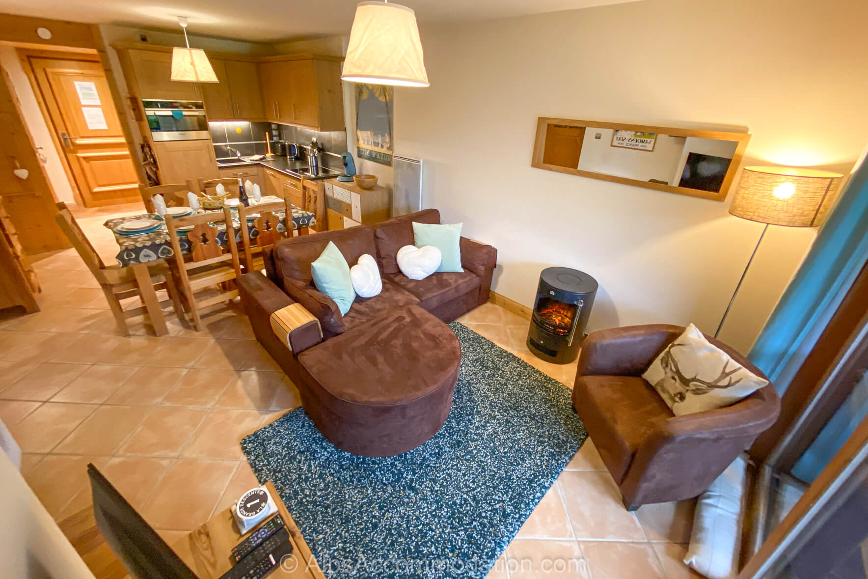 A l’entrée de l’appartement Chardons Argentés D3, vous trouverez l’espace spacieux et impressionante du séjour, au plan ouvert - salon, salle à manger et cuisine. Les grandes portes-fenêtres sont superbes – donc, cet l’espace séjour est très lumineux, et, en été, bien aéré. L’appartment etait decoré soigneusement par les propriétaires dans un style luxe mais acceuillant – comme chez soi! La cuisine est très bien equipée et elle comprend un grand four, aussi une micro-ondes “combination”, réfrigérateur-congélateur, lave-vaiselle, et, bien sûr, un grand espace de travail ou on peut préparer des répas délicieux. Les équipements a fondue sont aussi disponibles. L’espace salle à manger peut recevoir, en tout confort, 6 personnes.