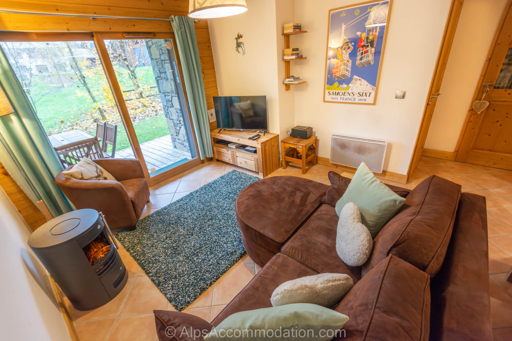 La piscine privée du développement est ouvert toute l’année - nos clients ont l’expérience agréable de prendre des bagnades délassantes après ski ou la randonnée. L’appartement est situé au coin calme et privé du développement, néamoins il est à 50m de marche de l’arrêt navet-ski, 400m de l’Office de Tourisme, et de la patinoire. Au 4-5 minutes, on accéde aux lacs magnifiques de Samoëns, ou on peut profiter des nombreuses activités au parc de loisirs environnant. Cette situation unique et agréable offre nos clients les vacances superbes – à toute l’année.