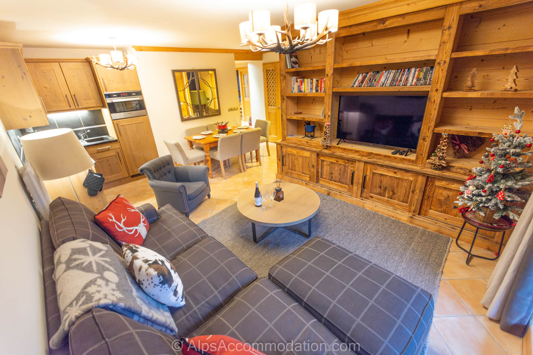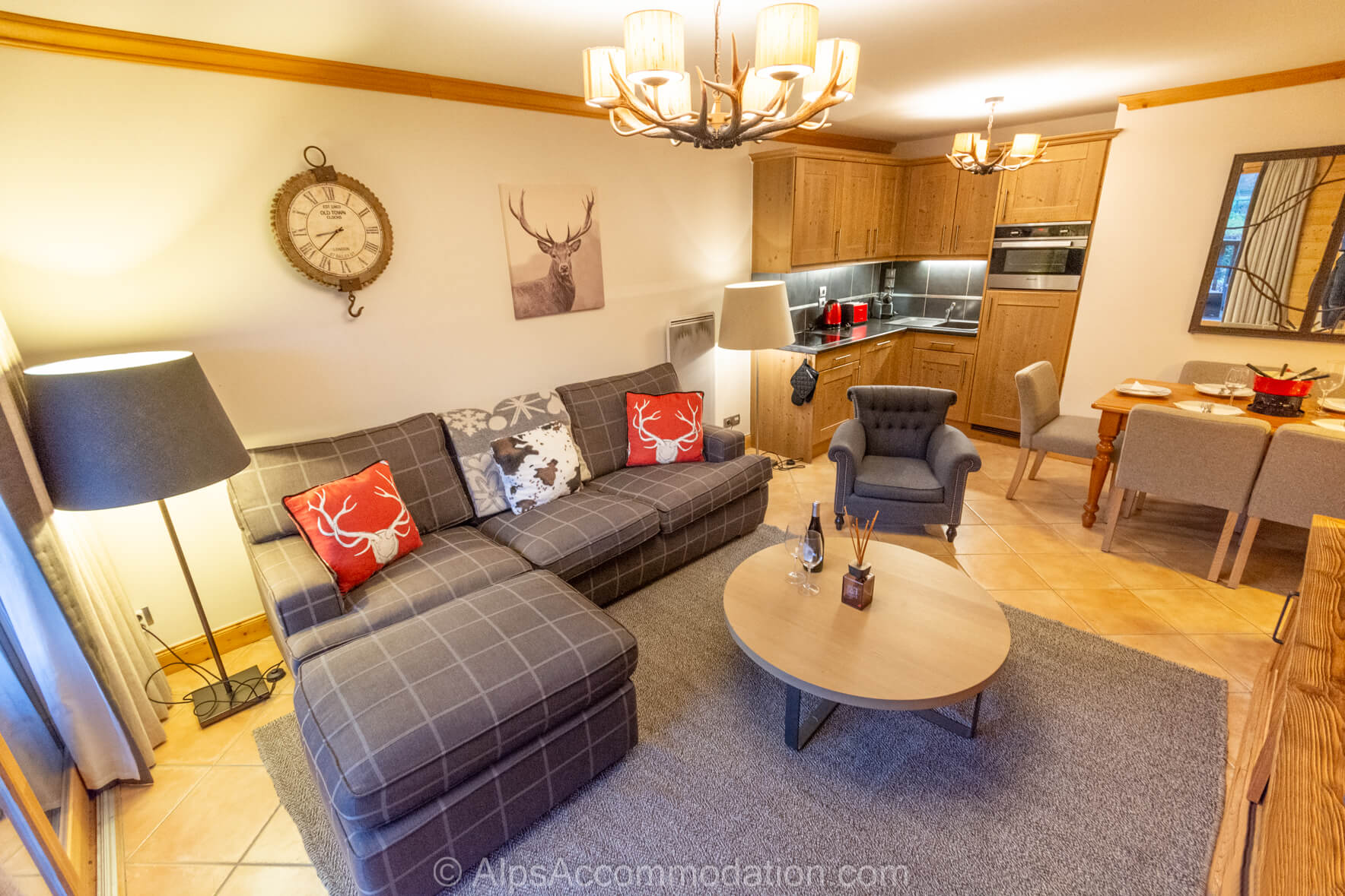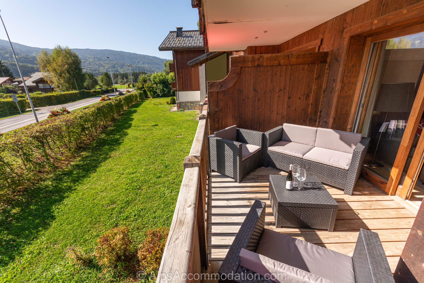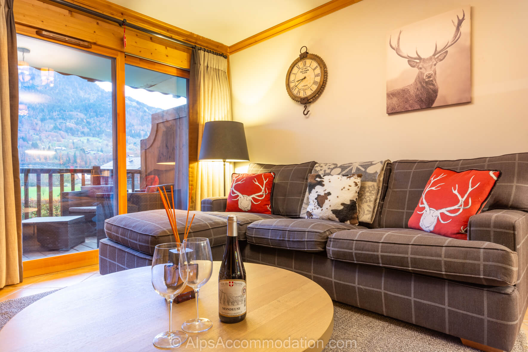 Deux balcons ensoleillés orientés plein sud offrent de magnifiques vues sur les montagnes environnantes, y compris l’imposant pic du Criou et, de l’autre côté de la vallée, le domaine skiable du Grand Massif. Équipés de mobilier d’extérieur, ils permettent de savourer un café au soleil du matin ou de se détendre avec un verre de vin après une journée d’aventure.