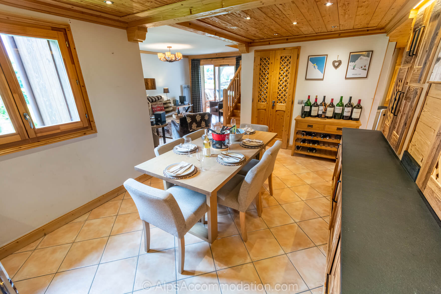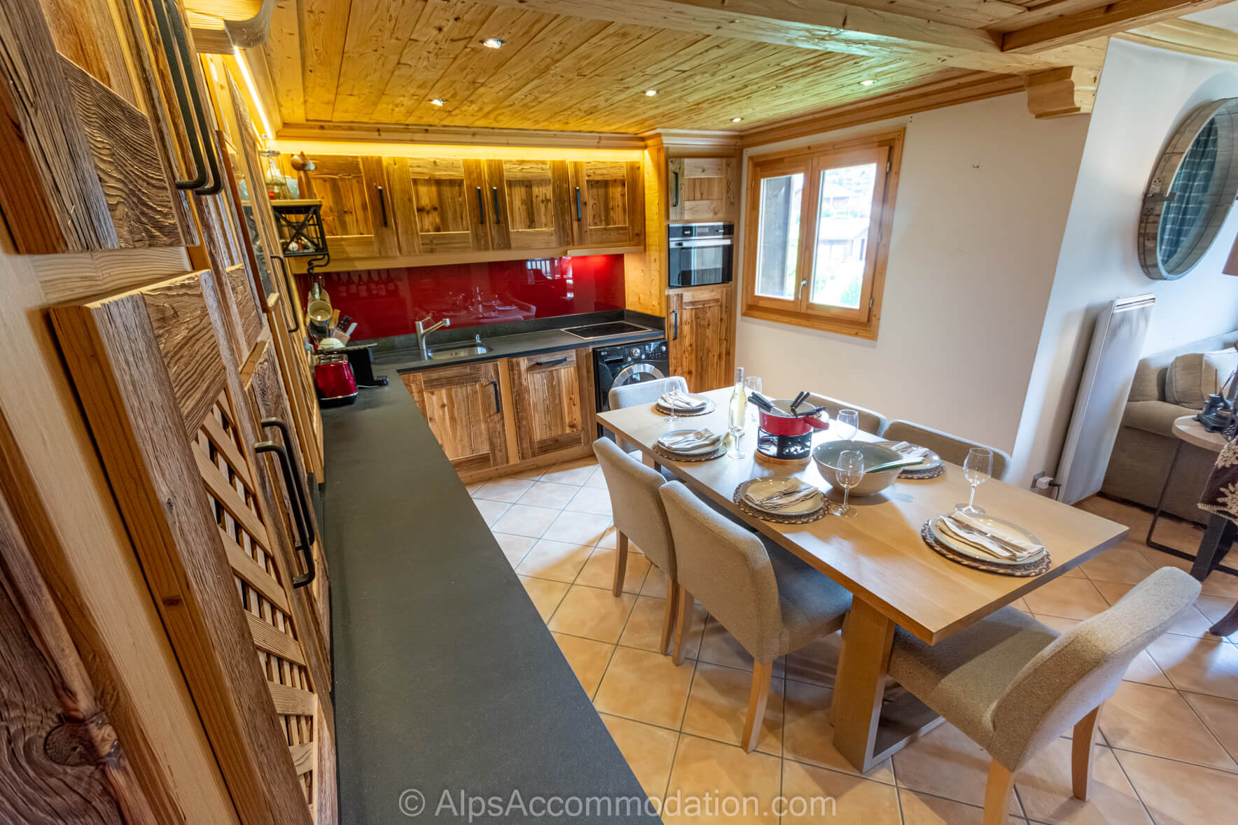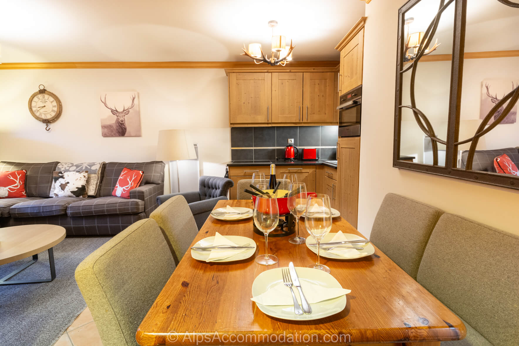 Les deux salles à manger sont meublées de magnifiques tables en bois et de chaises confortables rembourrées, idéales pour partager un repas ou jouer le soir. Les deux cuisines entièrement équipées disposent de tout le nécessaire, notamment lave-vaisselle, réfrigérateurs/congélateurs, machines à café Nespresso et, bien sûr, les indispensables appareils à fondue.