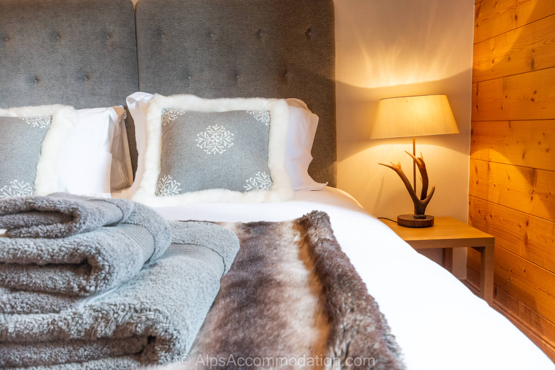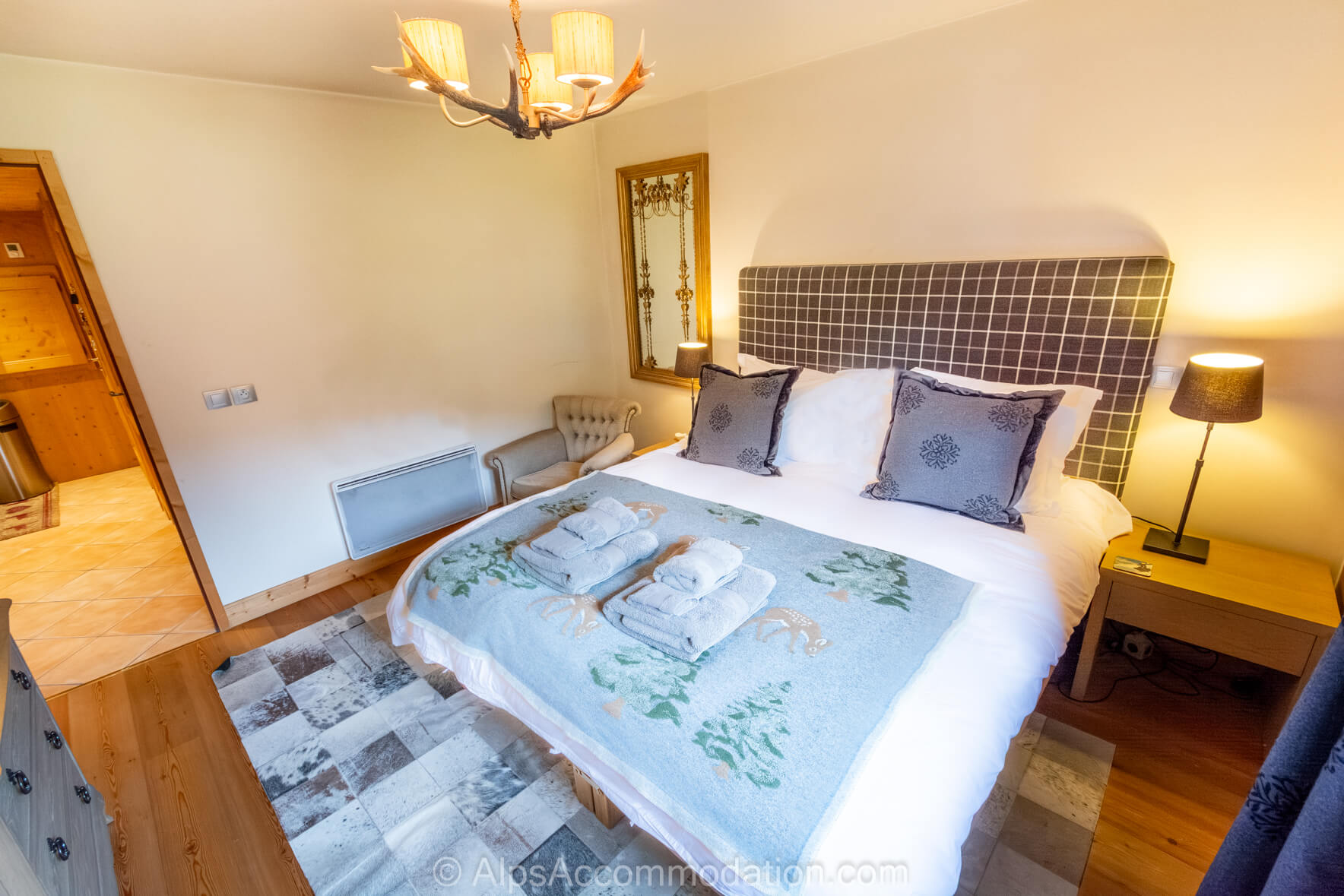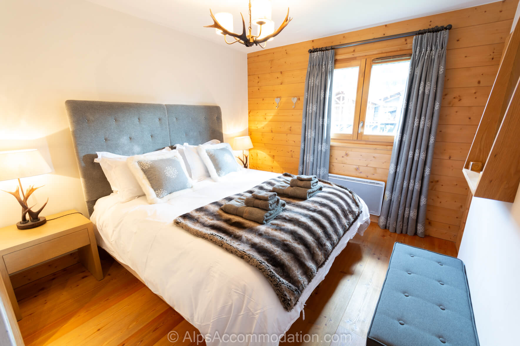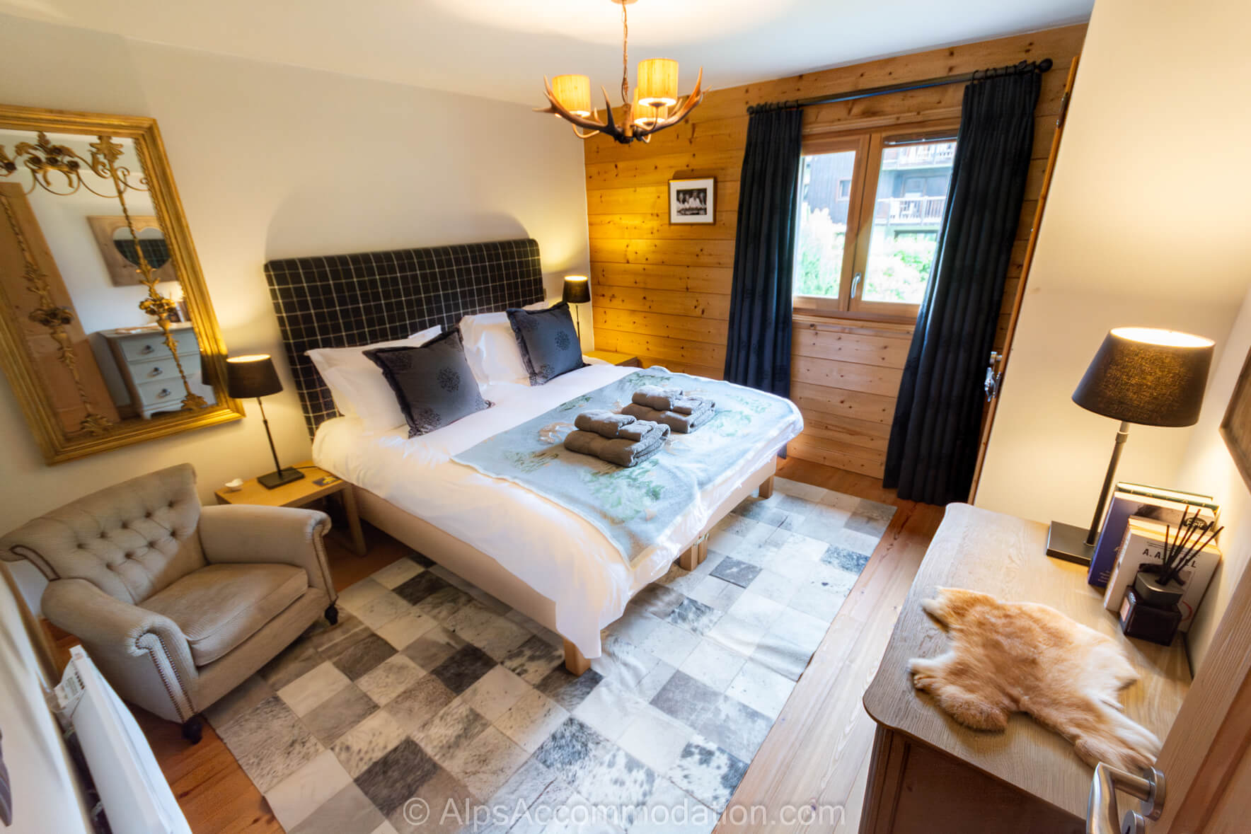 La chambre 1 est une élégante chambre double avec un luxueux lit super king-size, une belle décoration et de nombreux rangements grâce à l’armoire intégrée et la commode.