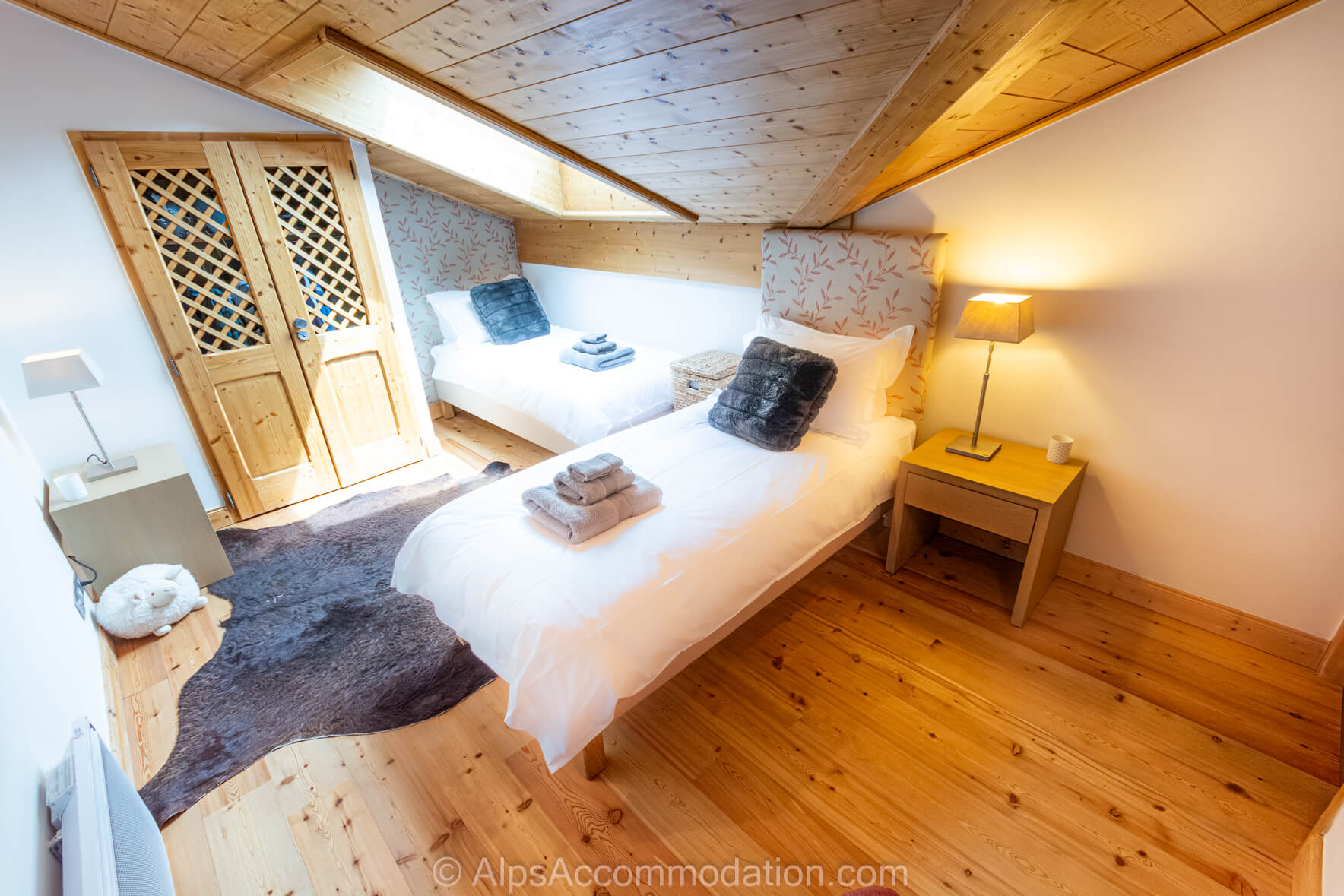 La chambre 3 est une spacieuse chambre à lits jumeaux (pouvant être aménagée avec lit super king-size sur demande) bénéficiant d’une belle luminosité grâce à une fenêtre de toit. Une armoire intégrée offre de bons rangements. Parfaite pour adultes ou enfants.