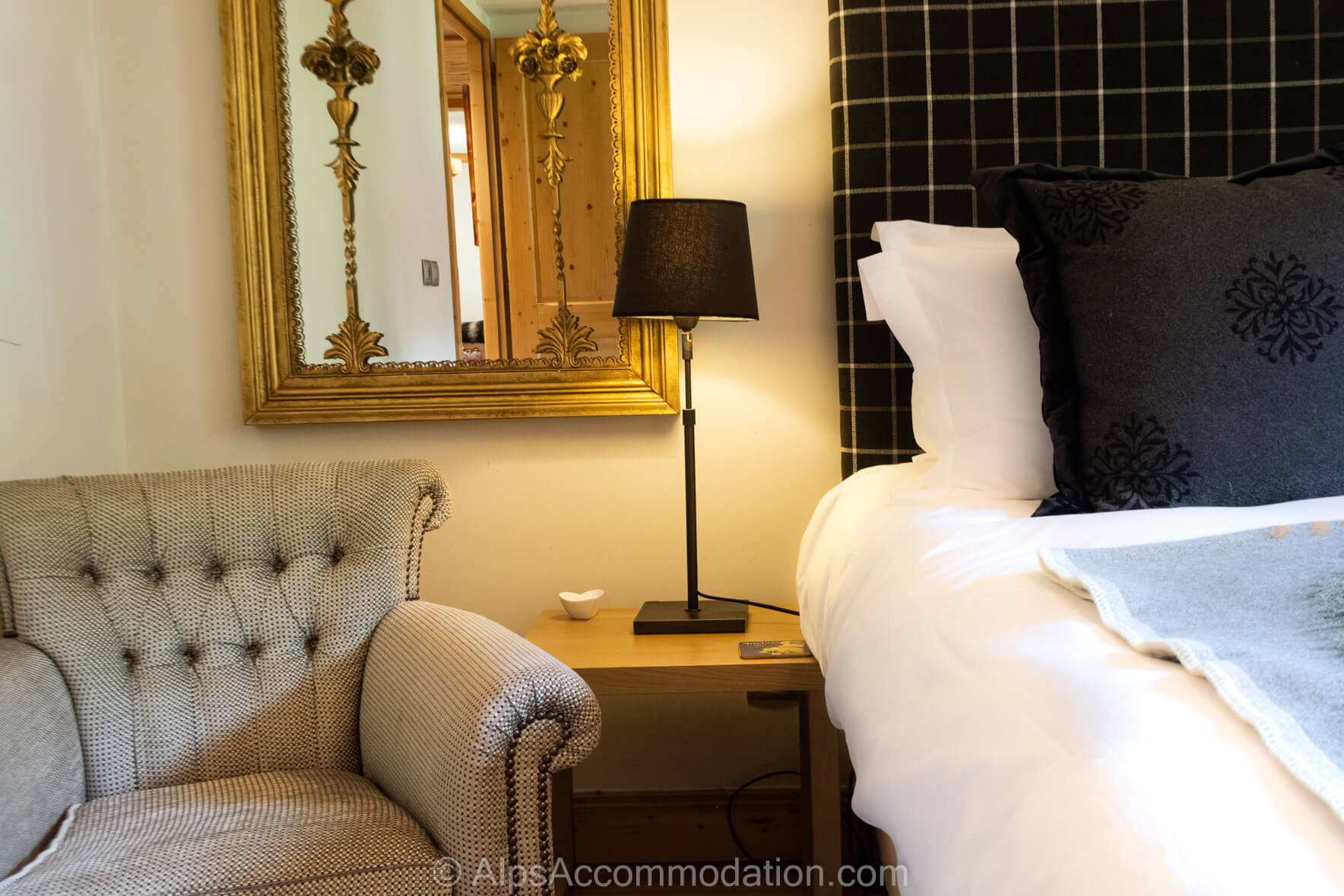La chambre 2 est une autre chambre double équipée d’un lit super king-size (pouvant être disposé en lits jumeaux sur demande). Un fauteuil confortable offre un coin lecture, tandis qu’une armoire intégrée assure le rangement.