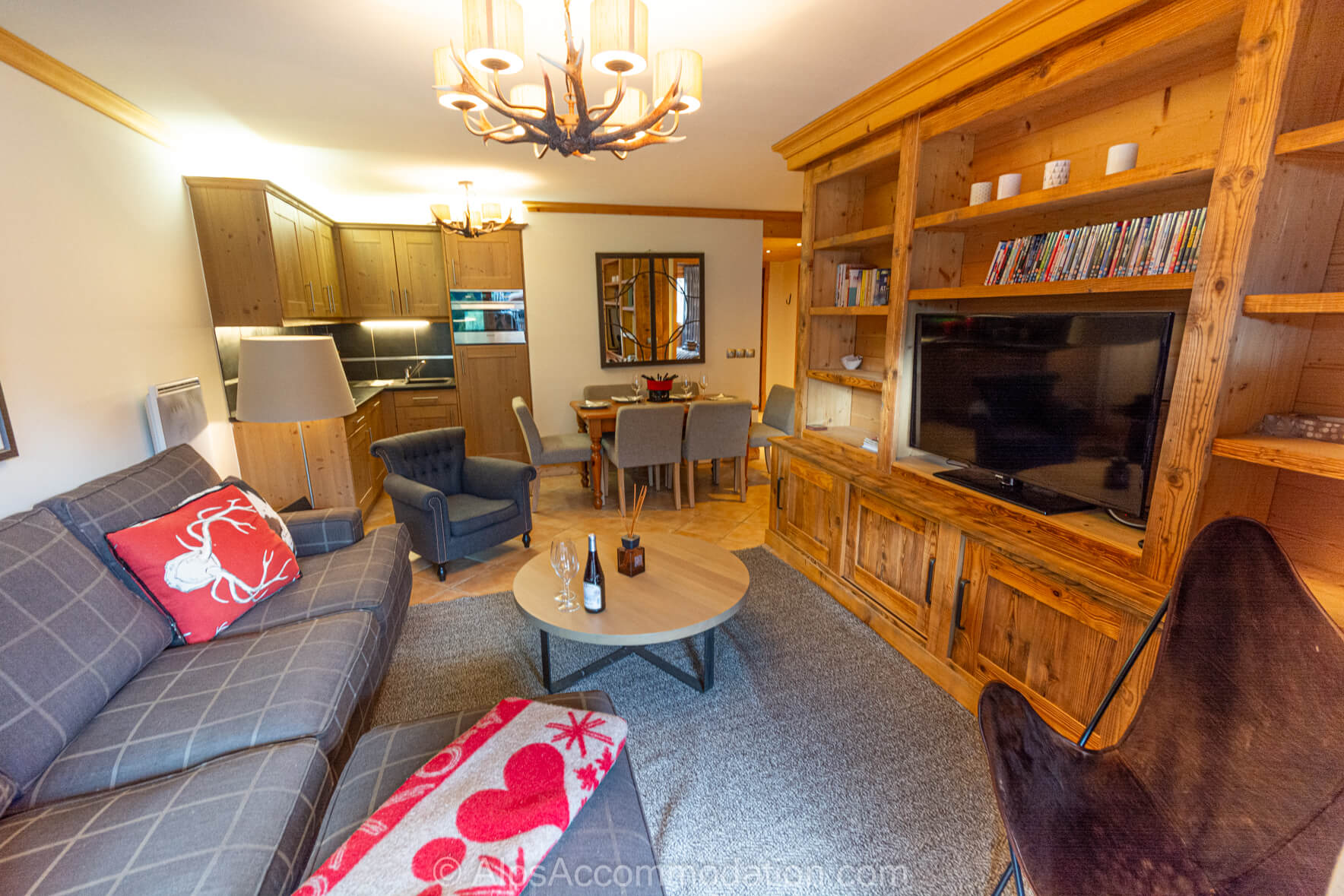 Les locataires sont accueillis par deux superbes espaces de vie ouverts sur salle à manger et cuisine, chacun débordant de caractère et baigné de lumière naturelle grâce à de grandes portes-fenêtres orientées plein sud. Ces pièces s’ouvrent toutes deux sur des balcons privés, offrant de petits espaces ensoleillés avec de charmantes vues pour se détendre après une journée en montagne.