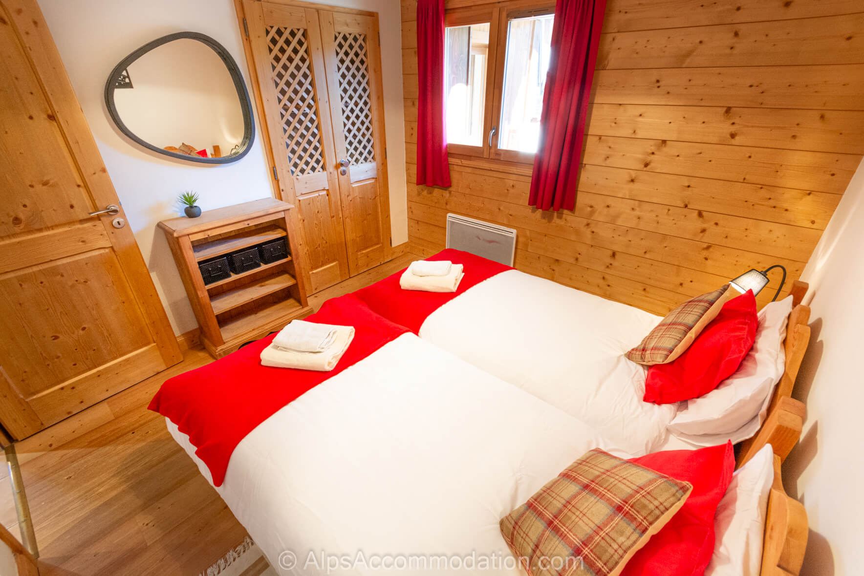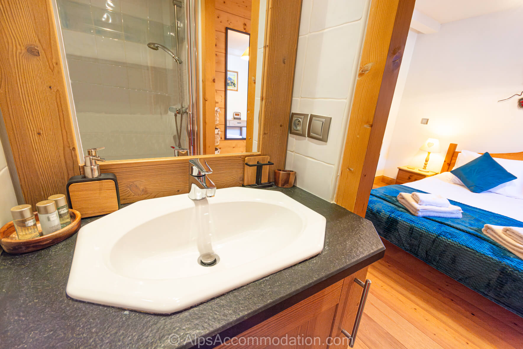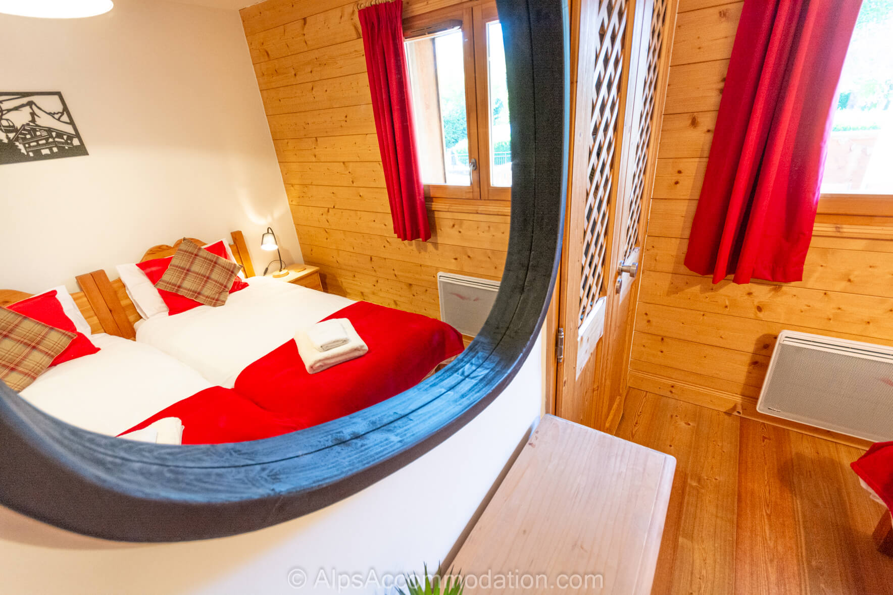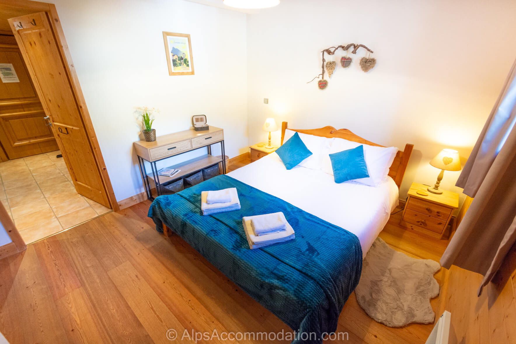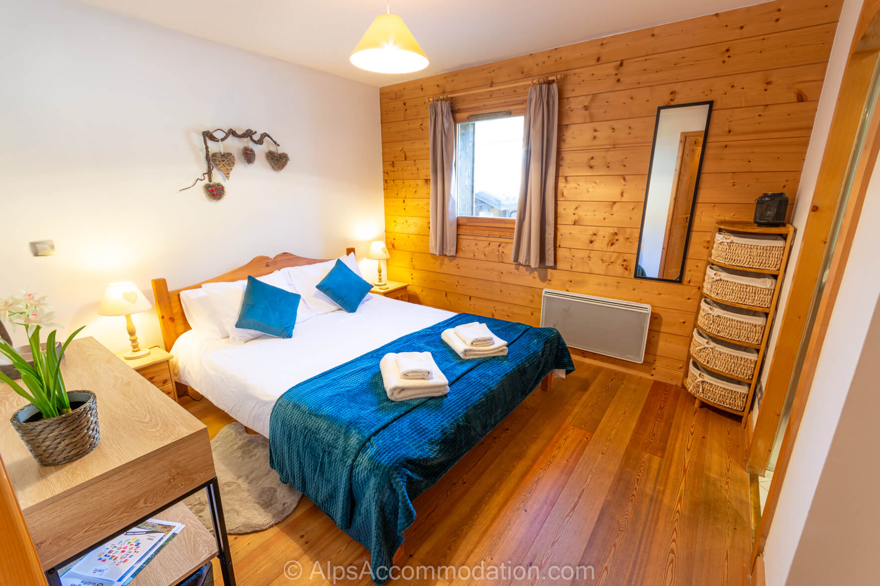 Dans la chambre principale, un somptueux lit king-size et une salle de bain attenante vous attendent, avec de belles vues sur la montagne La Bourgeoise et le versant sud de la vallée. Une armoire intégrée et des tiroirs offrent un grand espace de rangement.
