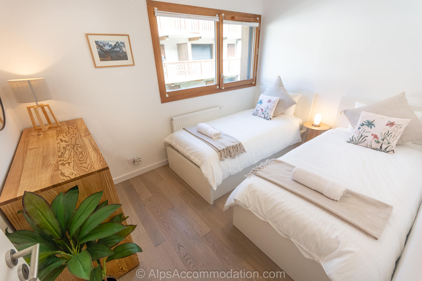 La Chambre 2, lumineuse, est équipée de deux lits simples et d’une commode pratique.