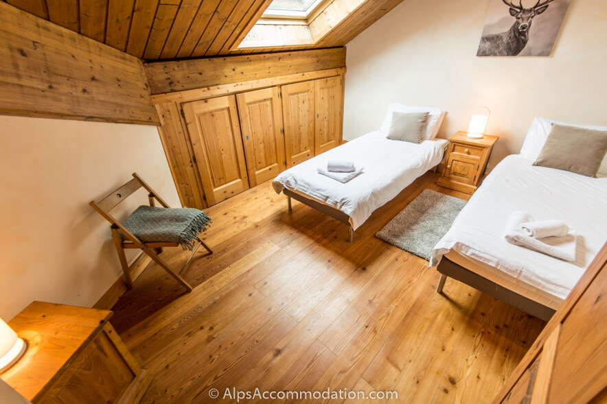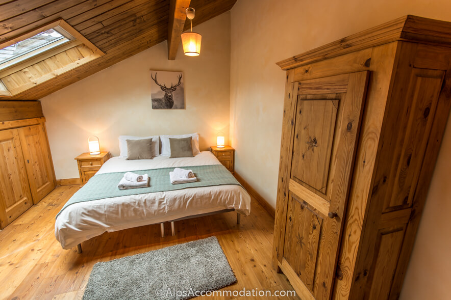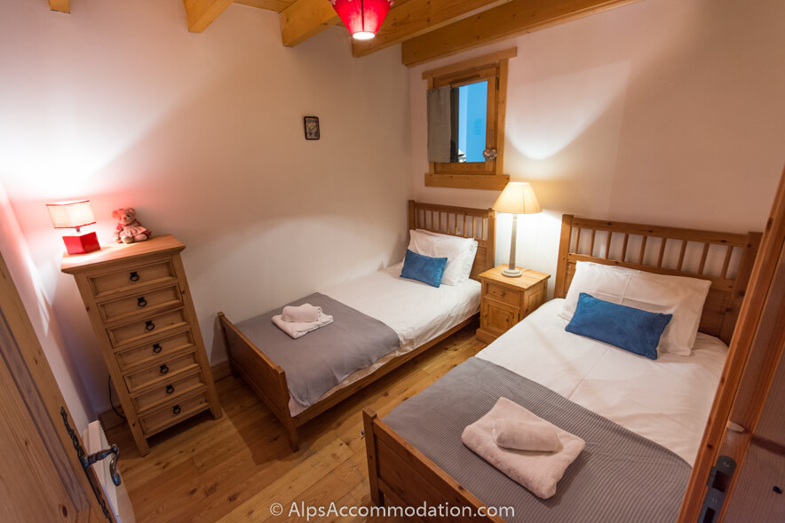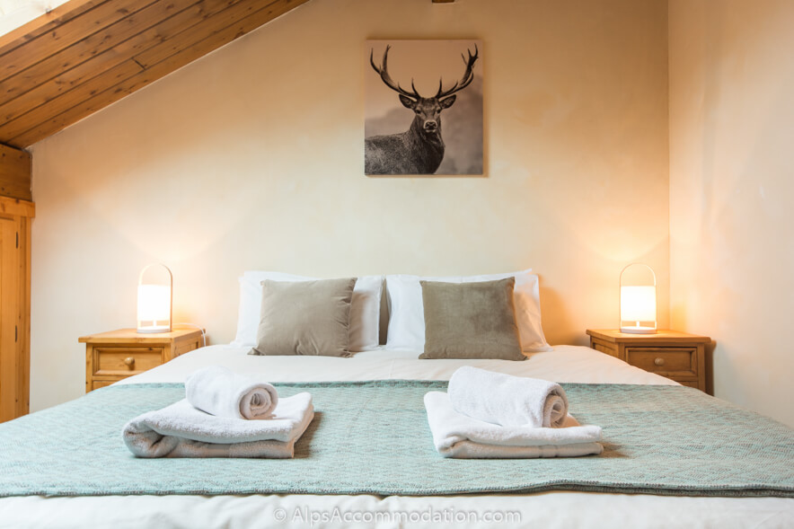 Au niveau de L’entrée, à coté du salon, sont situés 2 chambres, une à double, et l’autre à deux personnes avec 2 lits simple. A premier niveau, accédé par l’escalier, à coté de la salle à manger, se trouve la troisieme chambre. Cette spacieuse chambre est fourni avec une grand lit "super king", et un lit gigogne. Une salle d’eau avec douche, lavabo et WC est aussi situé à ce niveau.