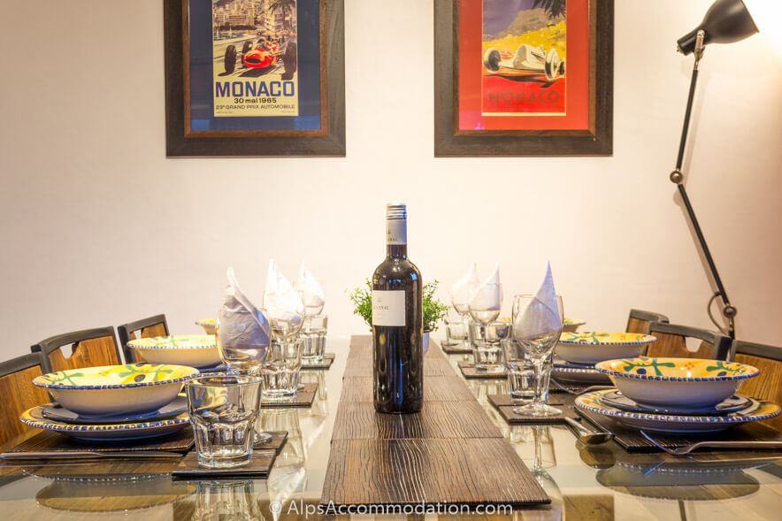 L’appartement est très bien equipé, avec une cuisine complète, comprenant : divers plats de cuisine en céramique, un réfrigérateur, un lave-vaiselle, un four à micro-ondes, une bouilloire, une machine à café. Une machine à raclette et une pierrade sont également disponibles. L’espace salle à manger comprend, quant à lui, une remarquable table en bois.