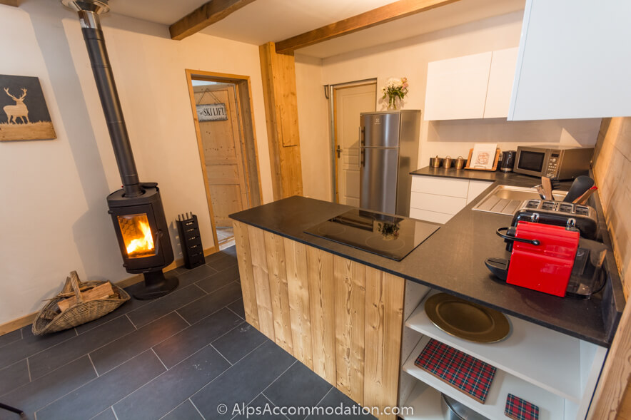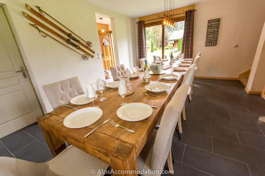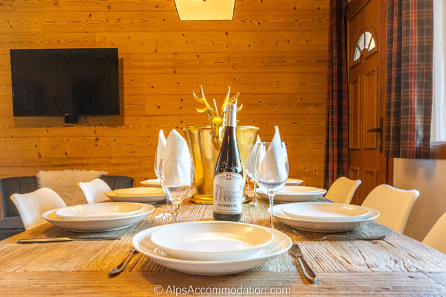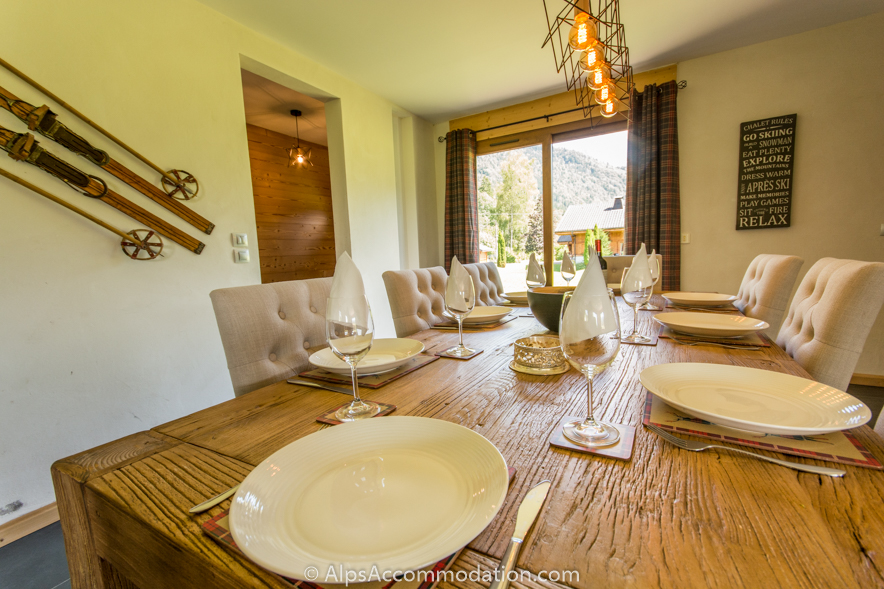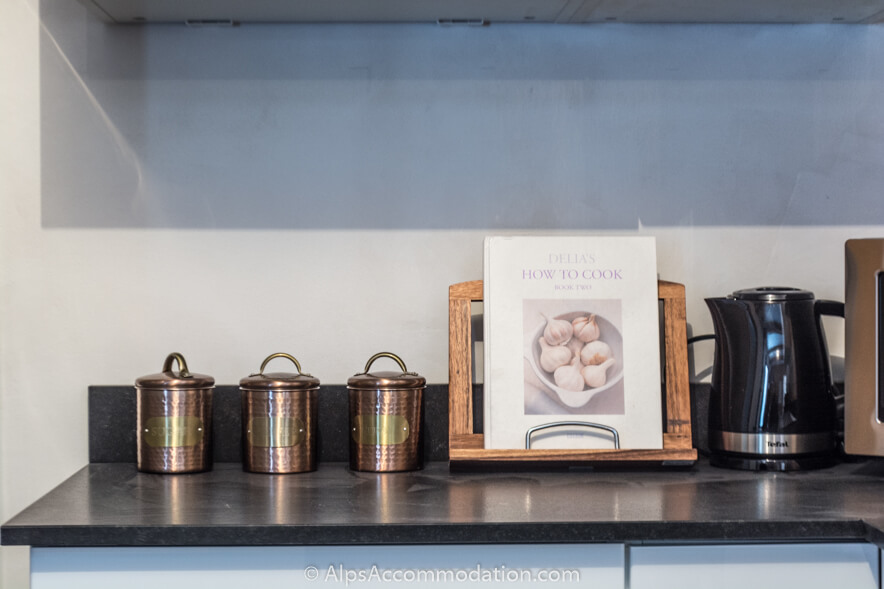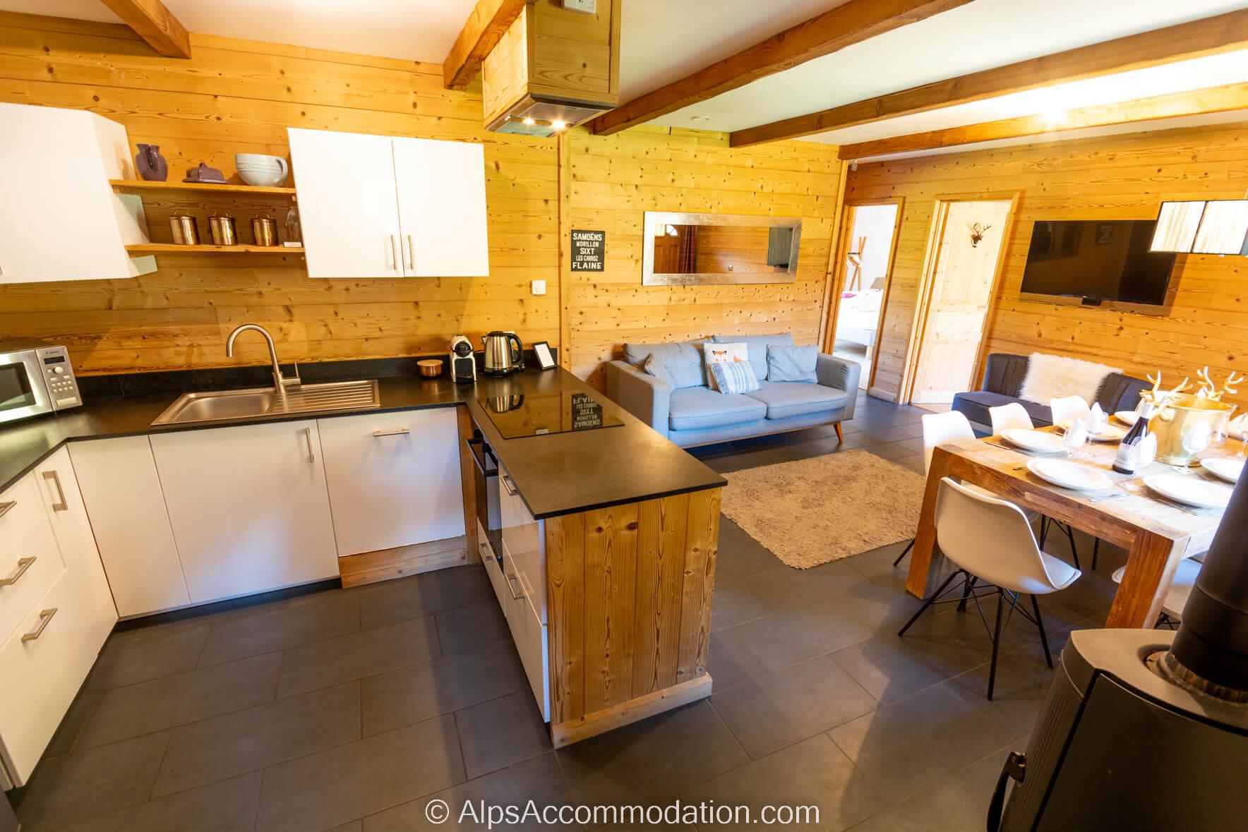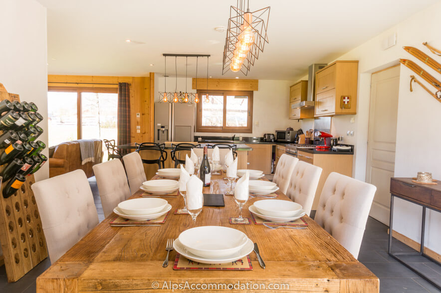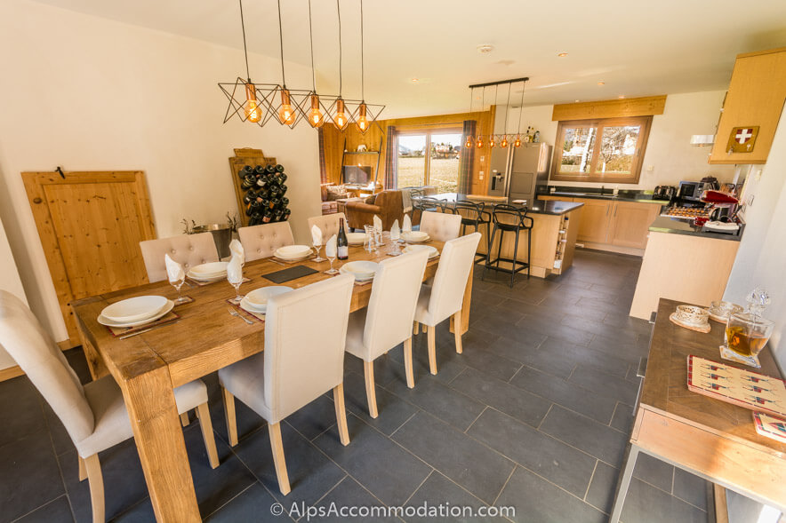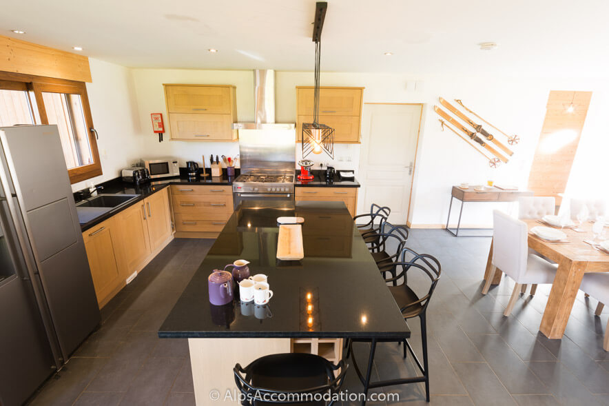 Dans la salle à manger principale, une belle lampe est suspendue au-dessus de la table en bois massif et ses élégantes chaises modernes. Lorsque les tables des deux chalets sont rapprochées, elles offrent la possibilité à 18 personnes de dîner ensemble, tandis que le casier à bouteilles assure la proximité de la réserve ! Les deux cuisines tout-équipées du chalet sont harmonieusement connectée par une porte centrale interne. Une cuisinière à gaz 5 plaques et 4 plaques de cuisson céramique sont à votre disposition, ainsi qu’un four électrique à chaleur tournante de taille standard, deux réfrigérateurs-congélateurs de taille standard, l’un de style américain, deux fours à micro-ondes, 2 lave-vaisselle, et d’excellentes machines à café. Vous trouverez évidemment d’amples espaces de rangement, sans oublier, absolument tous les plats et ustensiles dont vous pourriez avoir besoin.
