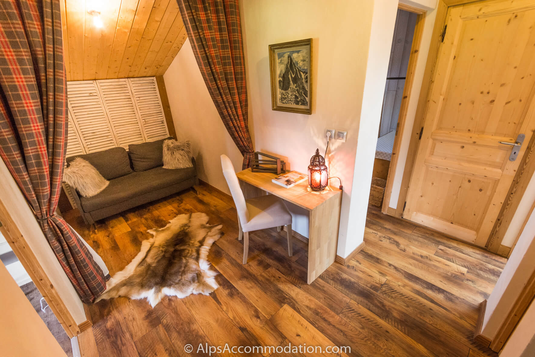 La chambre 9, le « snug » utilise le canapé-lit double de l’étage inférieur, et offre une flexibilité supplémentaire quant à l’hébergement dans cette pièce confortable et spacieuse.