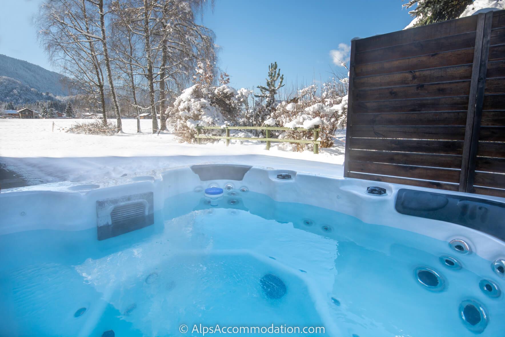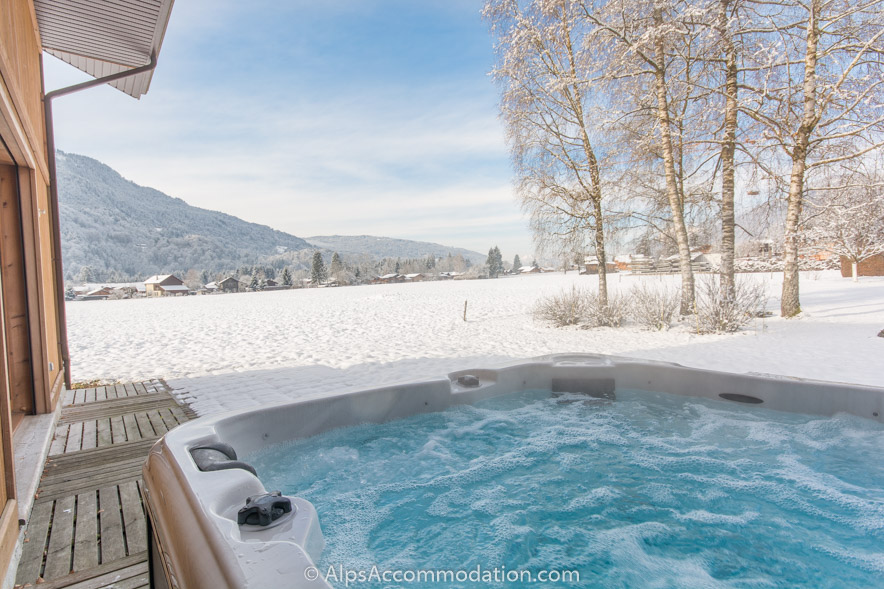Le chalet est doté de deux imposants spa, parfait pour terminer une longue journée dans les montagnes. Un chemin couvert mène au spa situé au-devant de la maison, tandis que le second spa est situé sur la terrasse de derrière.