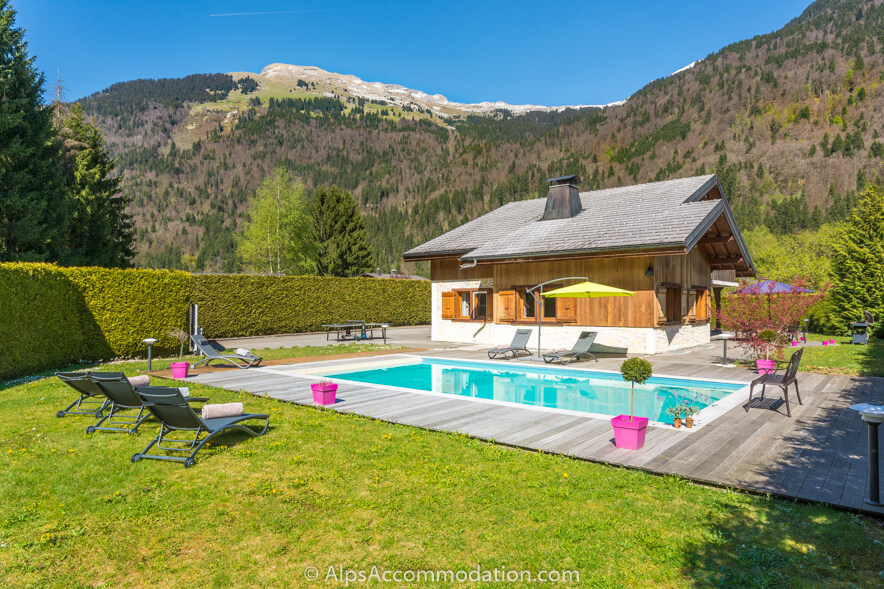 Le Chalet du Mont des Fraises est un somptueux chalet alpin de 420m², avec ses 5 chambres pouvant loger 10 personnes. L’un de ses nombreux atouts est la piscine privée de 9 mètres, bordée d’une terrasse en bois et de pelouse, située dans son paisible jardin isolé. Le Chalet est équipé d’un spa / bain à remous extérieur situé dans le jardin privé. Chalet du Mont des Fraises possède la classification officielle 4* par l'office de tourisme de Samoëns.