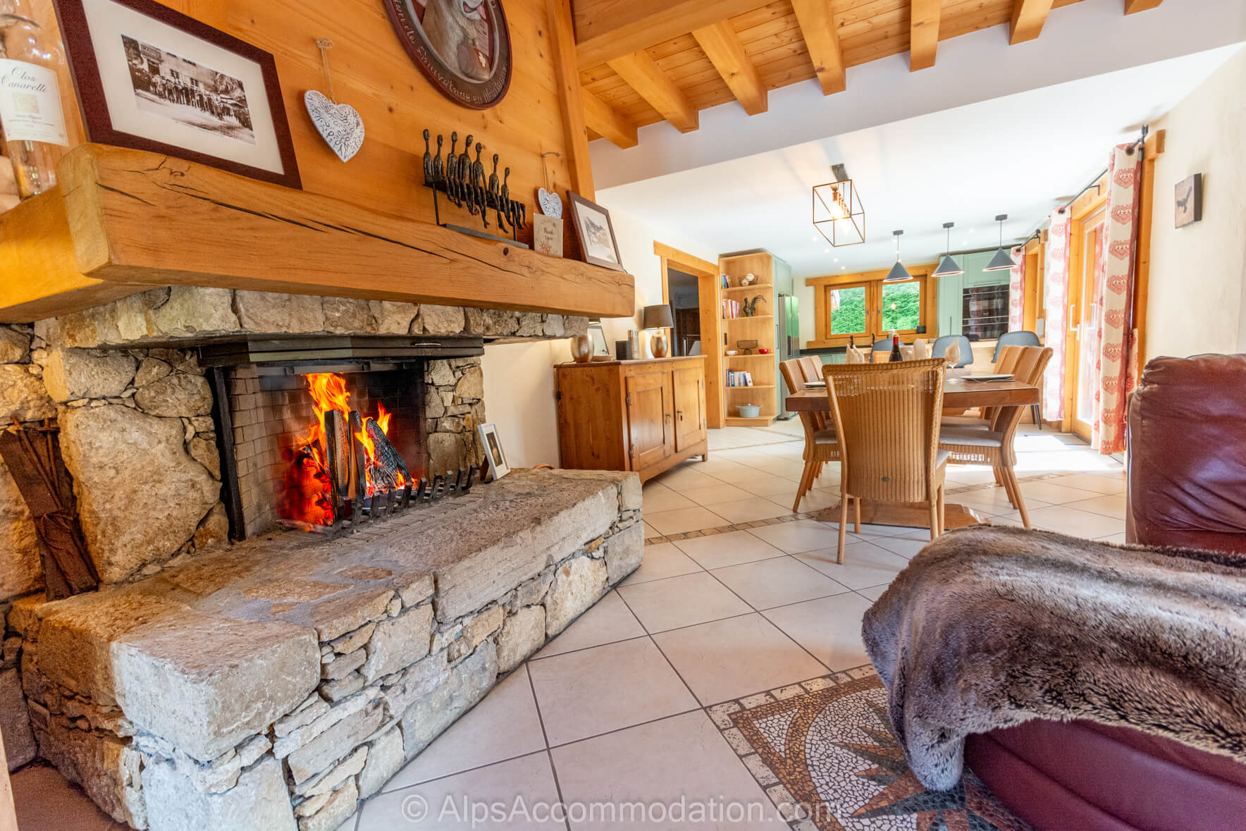 Un hall d’entrée spacieux mène à l’intérieur du Chalet du Mont des Fraises et directement vers la salle de séjour ouverte sur la salle à manger et cuisine. Vous vous sentirez rapidement très à l’aise dans ce séjour, avec son double plafond donnant un style léger et aérien, et son énorme canapé d’angle devant la cheminée, vous n’aurez simplement plus envie de le quitter ! Installez-vous confortablement et profitez de la magnifique cheminée qui associe de manière unique le côté rustique du bois et des pierres. Une smart TV LCD avec son surround et lecteur Blu-ray vous assure des soirées à la maison agréables. Une sélection de DVD, un grand choix de jeux de société et la Wi-Fi sont également mis à votre disposition.