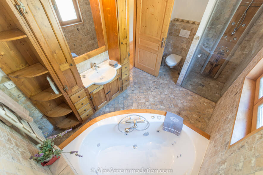 Le chalet propose 5 chambres spacieuses, toutes meublées d’éléments de qualité et de petits détails alpins, ce qui ajoute une note de charme et de luxe à ce magnifique chalet montagnard. Le chalet bénéficie de 2 grandes salles de bain et d’un WC séparé et lavabo en plus. La nouveauté pour l’hiver 2017/18 sera la 3ème salle de bain, offrant encore plus de confort aux locataires.