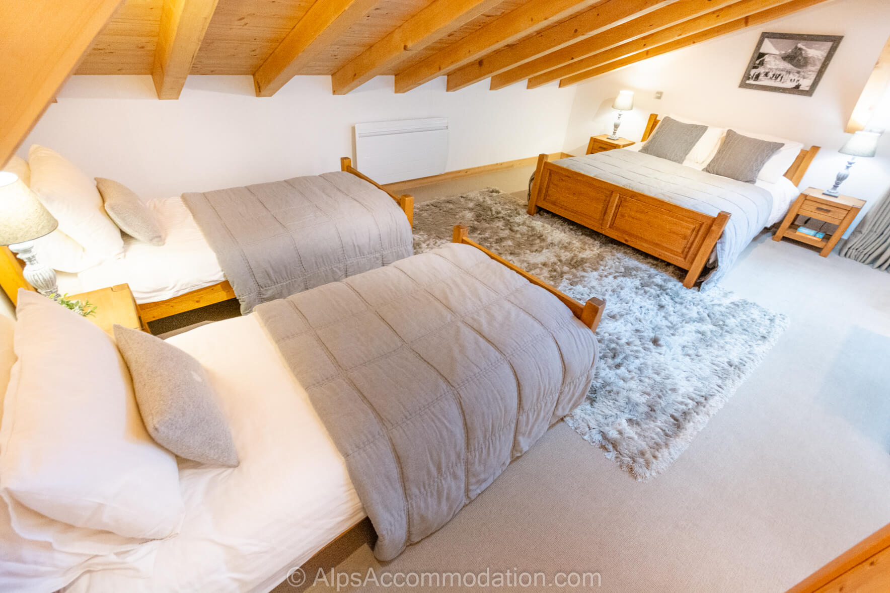 4 personnes, ensuite (douche, WC), 1 x lit king (largeur 160cm) & 2 x lit simple