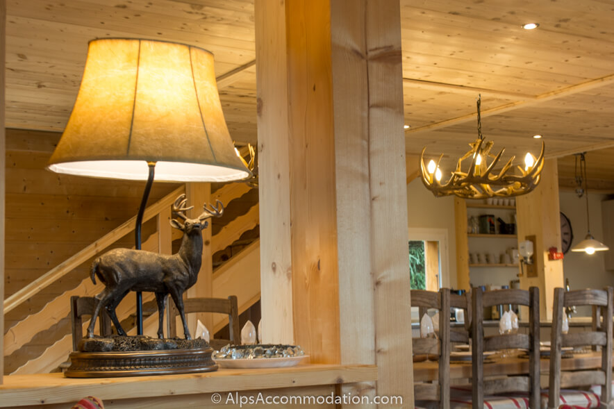Une atmosphère accueillante vous attend dès l’entrée du Chalet Gentiane Bleue. Récemment et soigneusement rénové par ses propriétaires, ce chalet possède une décoration et un ameublement d’une très haute qualité, que l’on apprécié tout suite. Le hall d’entrée mène directement à la cuisine spacieuse, plan ouvert. On y trouve un wc/vestiaire et une déco de raquettes de neige.