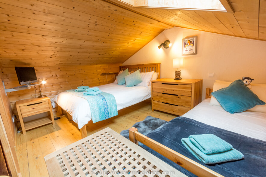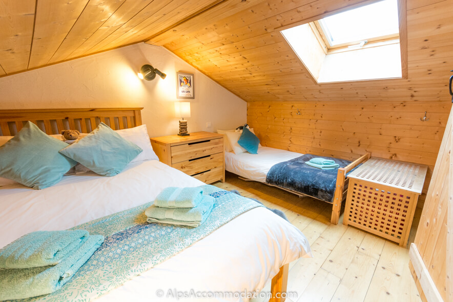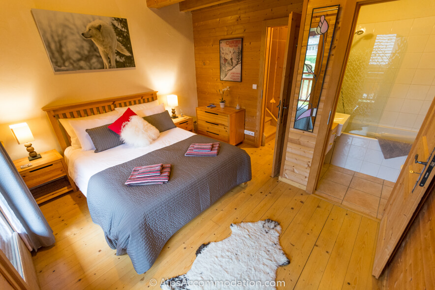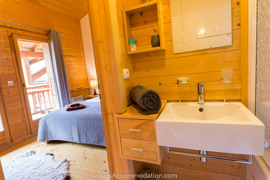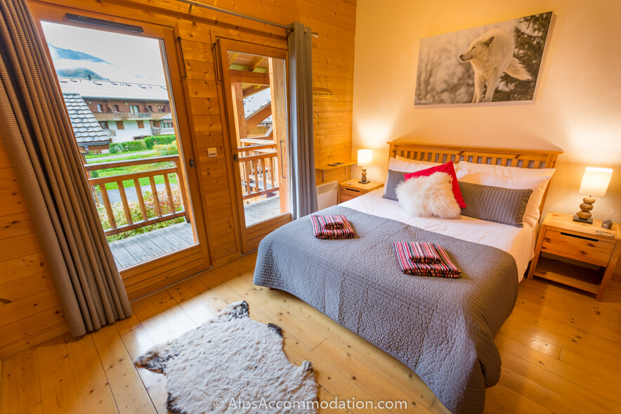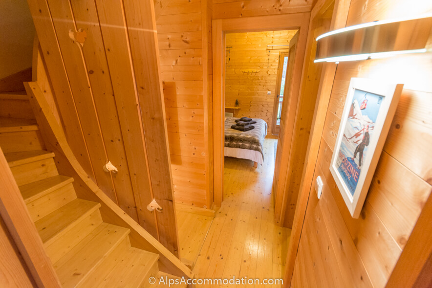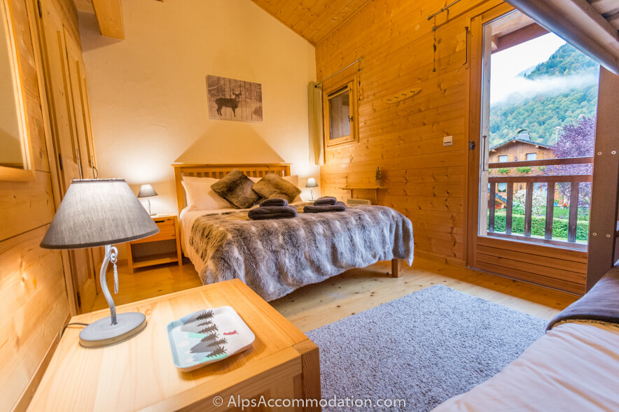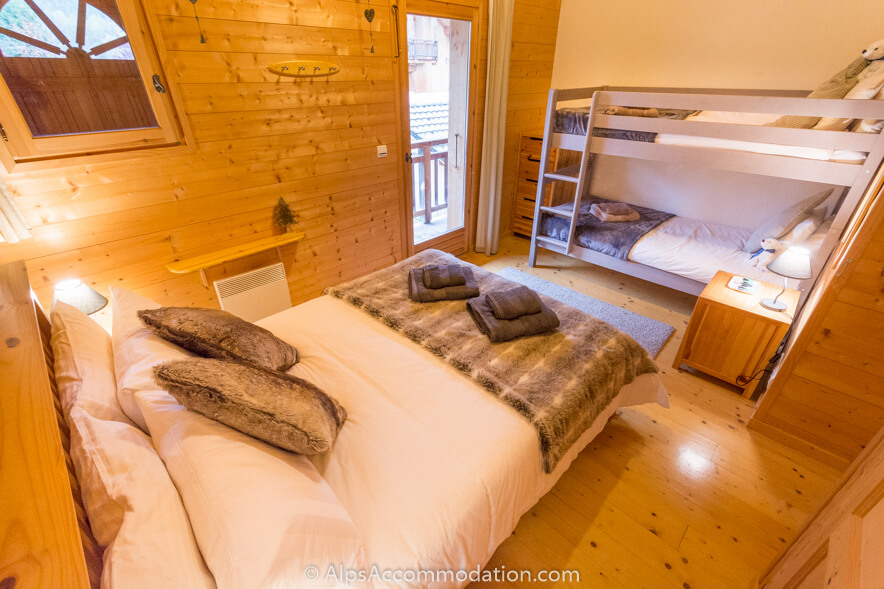 Au deuxième étage du chalet, il y a 2 chambres spacieuses. La chambre principale possède un grand lit, et beaucoup d’espace de rangement. La salle de bain, equipée avec bain, douche, lavabo et WC, est ensuite. On peut accéder de cette chambre au balcon, equipé de mobilier d’exterieur, pour profiter des vues superbes et du soleil tout la journée. En face de cette chambre se trouve la seconde chambre, très confortable, equipée avec une lit a double, un lit superposé et un grand espace de rangement. On accéde de cette chambre au second balcon par une porte-fenêtre, offrent les vues étonnants du sommet de La Criou. Ce balcon est idéal pour se détendre après une journee de ski ou de la randonée.