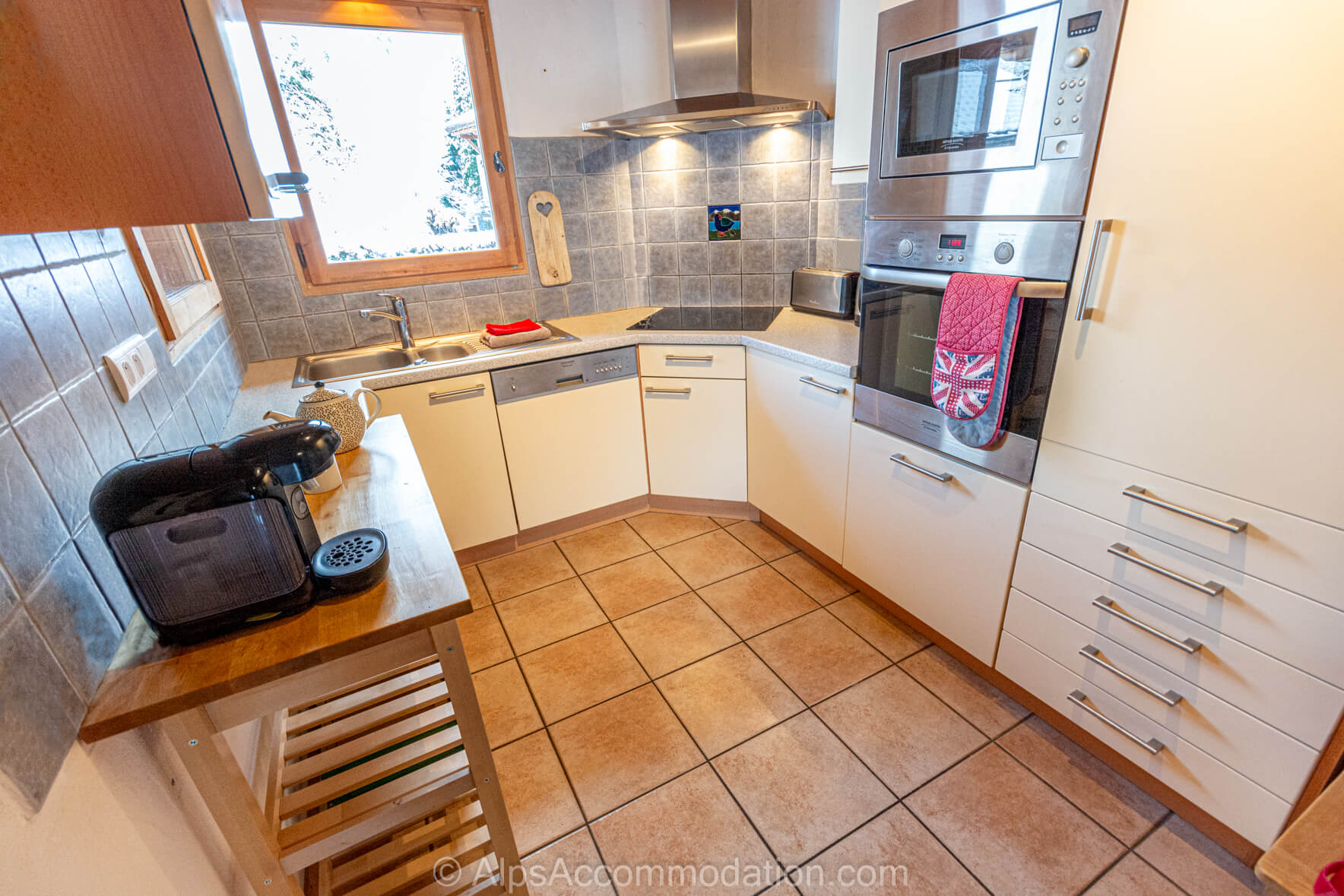 Au première étage du chalet, vous accédez à un grand espace séjour. L’espace cuisine est superbément equipée avec une cafetière Tassimo, une machine à laver, un grand four, un four micro-ondes, une lave-vaiselle et tous les appareils et l’espace de rangement d’une cuisine de luxe. La salle à manger a une table extensible pour 9 personnes. A côté de la salle à manger est situé l’espace salon, avec les sofas très confortables autour du’une charmante cheminée à bûches, l’endroit idéal pour se détendre au retour des activitiés, ou se réposer regardant la télé. Les portes fenêtres offrent une ambiance lumineuse, et les vues spectacles aux montagnes.