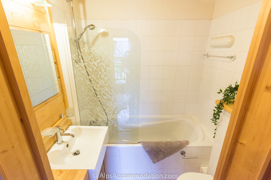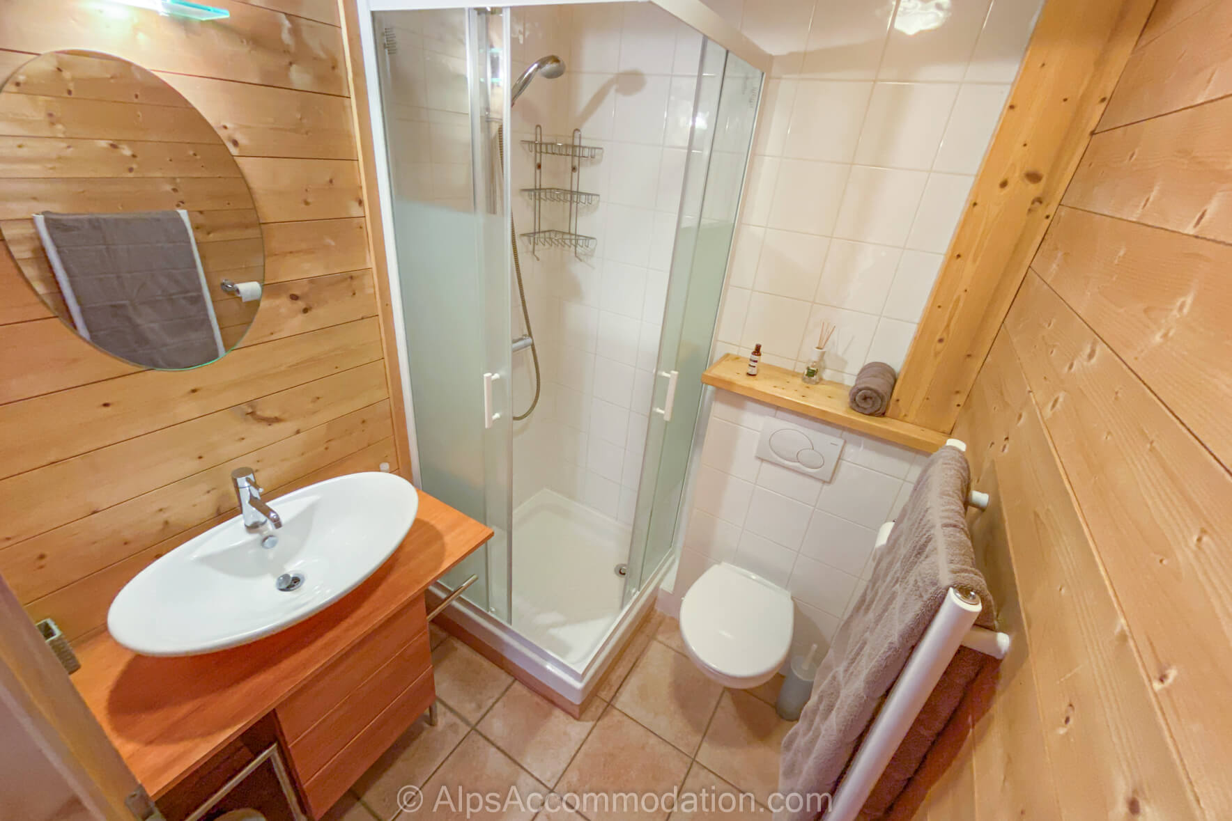Une seconde salle-de bain, equipée avec douche, lavabo et WC est situé entre ces deux chambres. Au troisième étage est situé chambre no 3, style grenier, pouvant loger trois personnes. Elle est equipée avec un lit à double et un lit simple, lecteur de DVD, et espace de rangement. Par la fenêtre eclairée par Velux, à l’autre côté de la vallèe, on peut admirer les eaux scintillantes de La Cascade de Nant, l’inspiration du nom de ce chalet. Ces trois chambres sont bien meublées, d’une qualité excellente, avec les garde-robes, étagères, tiroirs, crochets et l’espace pour ranger vos baggages.