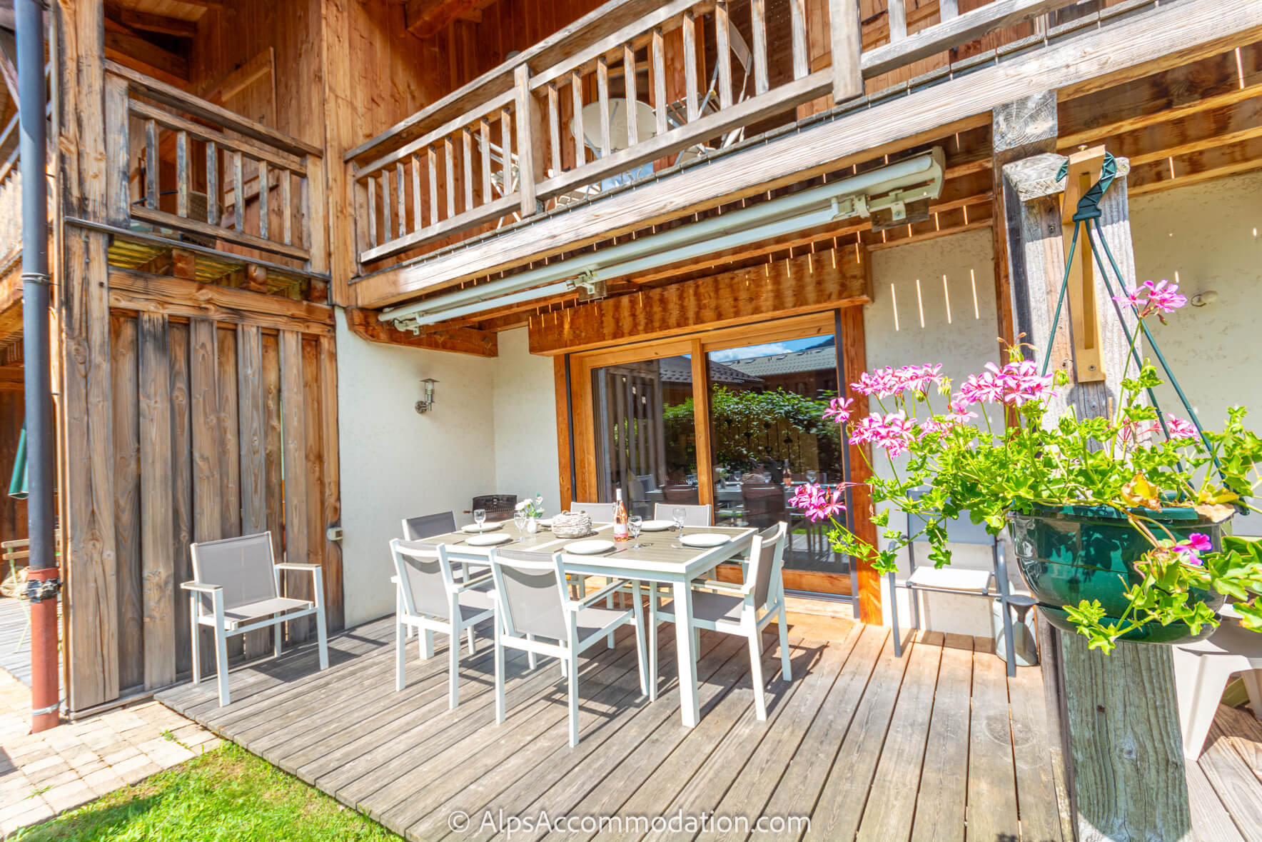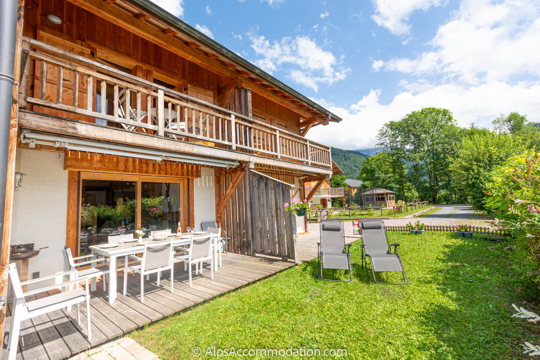 Chalet La Cascade possède une terrasse/jardin, versant sud, fourni avec une table, des chaises, un barbecue, 2 sièges longues, et, le longue de la façade, un grand couverture électrique - pour profiter du soleil en été ou en hiver. Les fines herbes du jardin sont à votre disposition - la gastronomie chez vous!