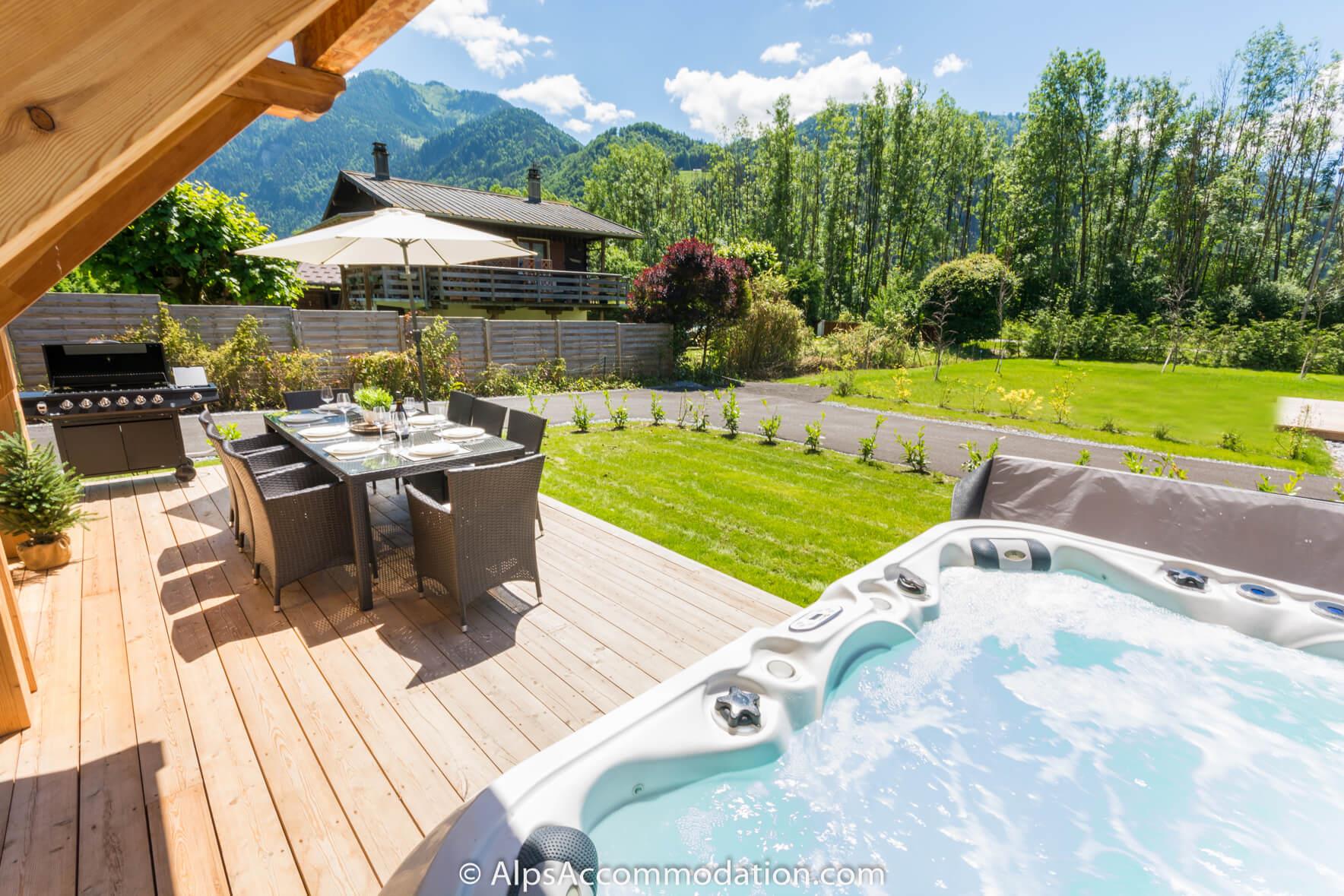 L'un des points forts incontestés du Chalet Louisa est son somptueux jacuzzi. Situé sur une terrasse entourant les côtés sud et est du chalet, c’est l'endroit idéal pour profiter du panorama enneigé. En été, la terrasse et la pelouse se combinent pour offrir un bel espace pour manger ou jouer !
