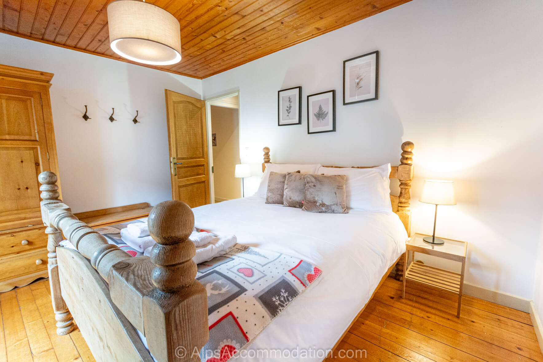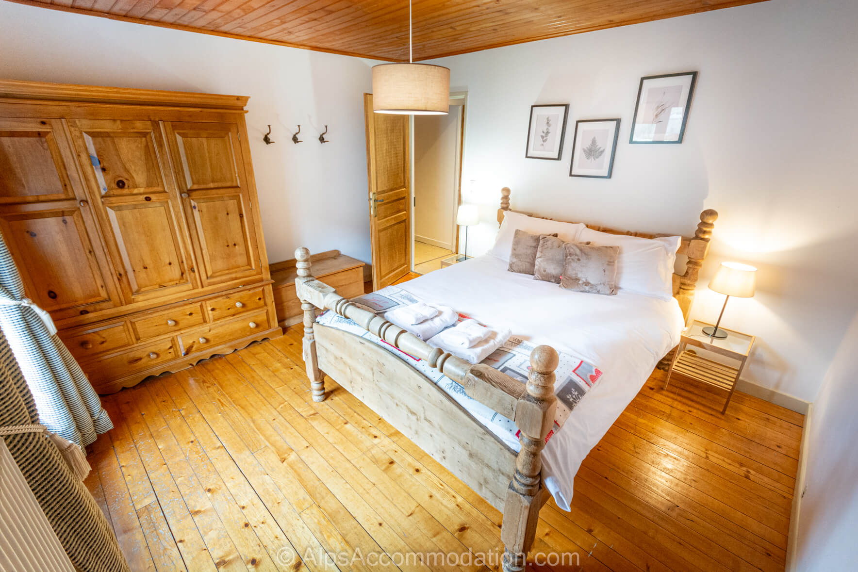 Chacune des 4 chambres du chalet est spacieuse avec du linge en coton égyptien et des meubles en pin blanc attrayants. Des détails comme le parquet en bois d’origine et les grandes fenêtres ou porte-fenêtre, apportent luminosité et fraicheur.