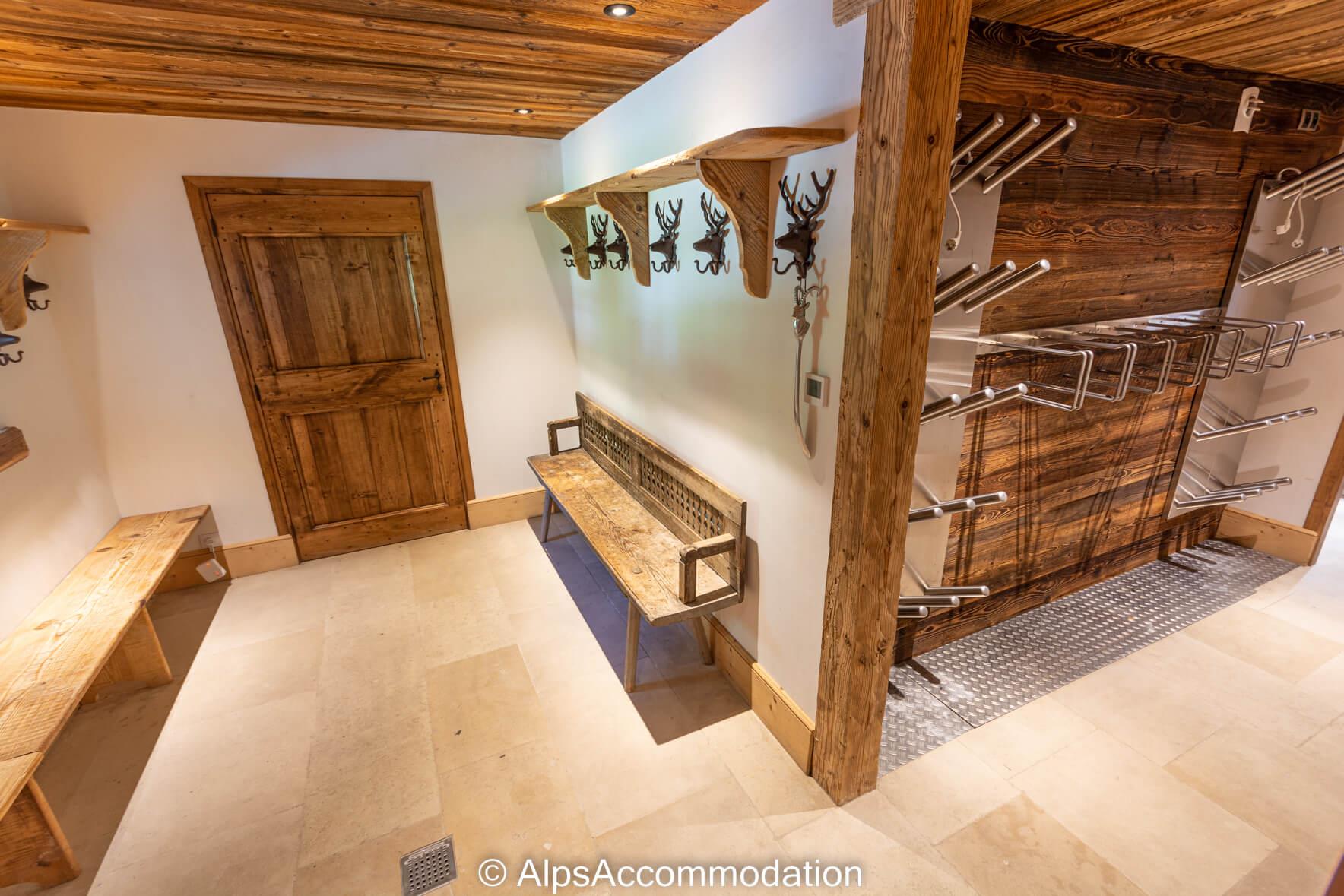 Dans le grand local à skis et à chaussures, vous trouverez deux porte-chaussures multi-chaussures, des porte-skis, ainsi qu'un vestiaire avec une grande penderie. Au-delà du local à skis, une laverie est équipée de deux lave-linges et deux sèche-linges.