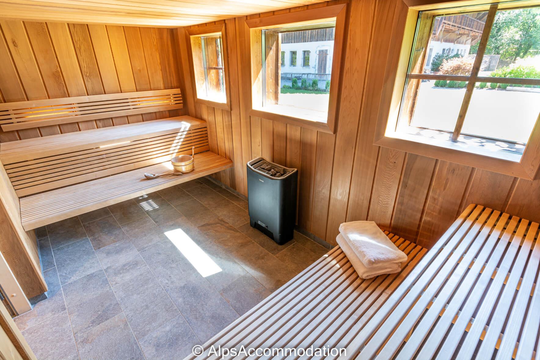 L'un des points forts est sans aucun doute le jacuzzi traditionnel qui offre une vue fantastique sur l'ensemble des jardins en direction de la ferme. Juste à côté, un très grand sauna suédois est caché dans un mazot rénové, l'endroit idéal pour soulager les muscles fatigués après une journée en montagne. Le sauna contient également une douche et des toilettes séparées. Une terrasse reliant le sauna et le bain à remous offre un endroit pour se rafraîchir.