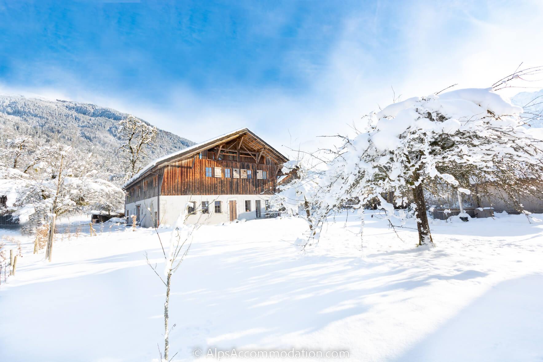 La propriété bénéficie d'un emplacement paisible à Vallon d'en Bas, entourée de vues spectaculaires et d'un accès rapide à de nombreux sentiers de randonnée / pistes cyclables en direction du fond de la vallée ou dans les montagnes environnantes. Le centre du village de Samoëns est à environ 1200m à pied plat (12 mins) et un arrêt de ski-bus se trouve à 300 m de la propriété, offrant un accès rapide à la télécabine du Grand Massif Express à Samoëns. Un parking privé est disponible pour 4/5 voitures.
