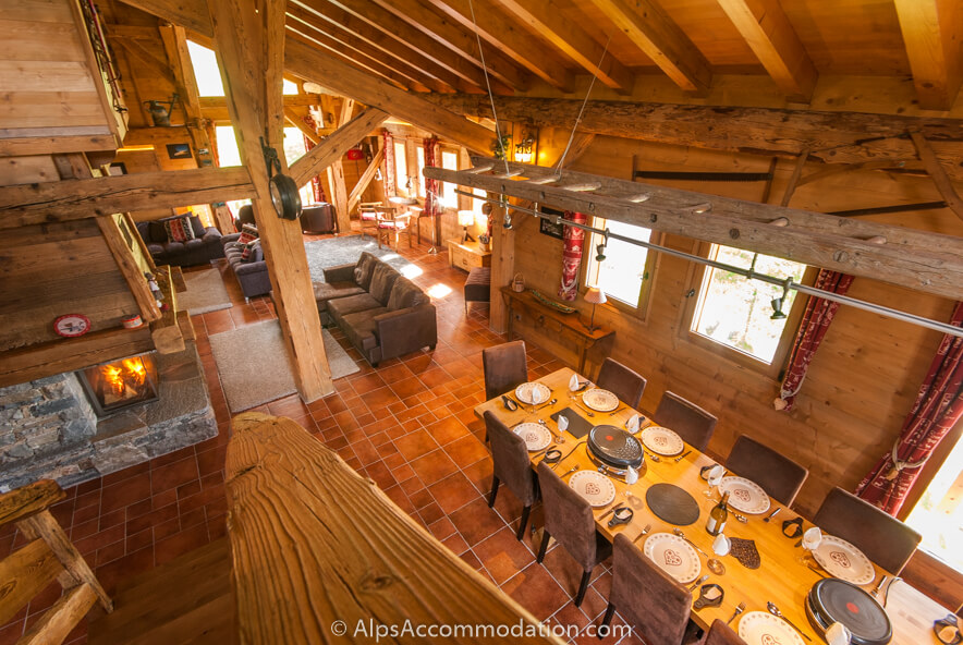 Dès votre entrée par la porte principale du chalet avec son sonnette ancienne en fer située au deuxième étage, vous serez ébloui par cette authentique ferme savoyarde, si chic et confortable. Sur les trois niveaux de 200m2 vous trouverez 6 chambres, 3 salles de bain et un espace séjour étonnante – cuisine, salon et salle à manger - au plan ouvert. Tous sont équipés d’un ameublement élégant et moderne.