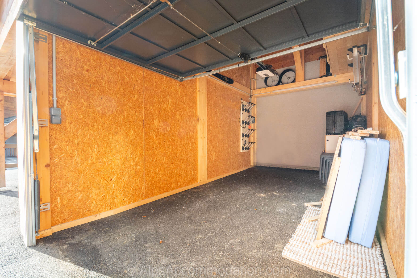 Deux places de parking privées sont disponibles, l'une dans un garage souterrain sécurisé et l'autre à l’extérieur. Une place de parking commune supplémentaire pour les personnes à mobilité réduite est disponible à proximité du chalet.