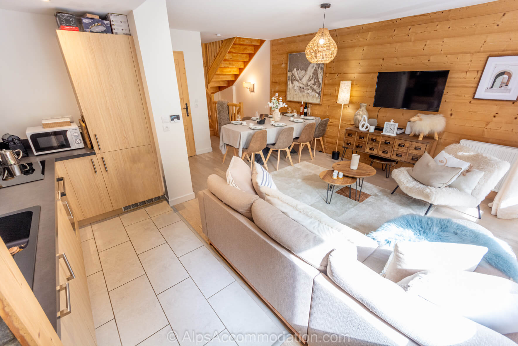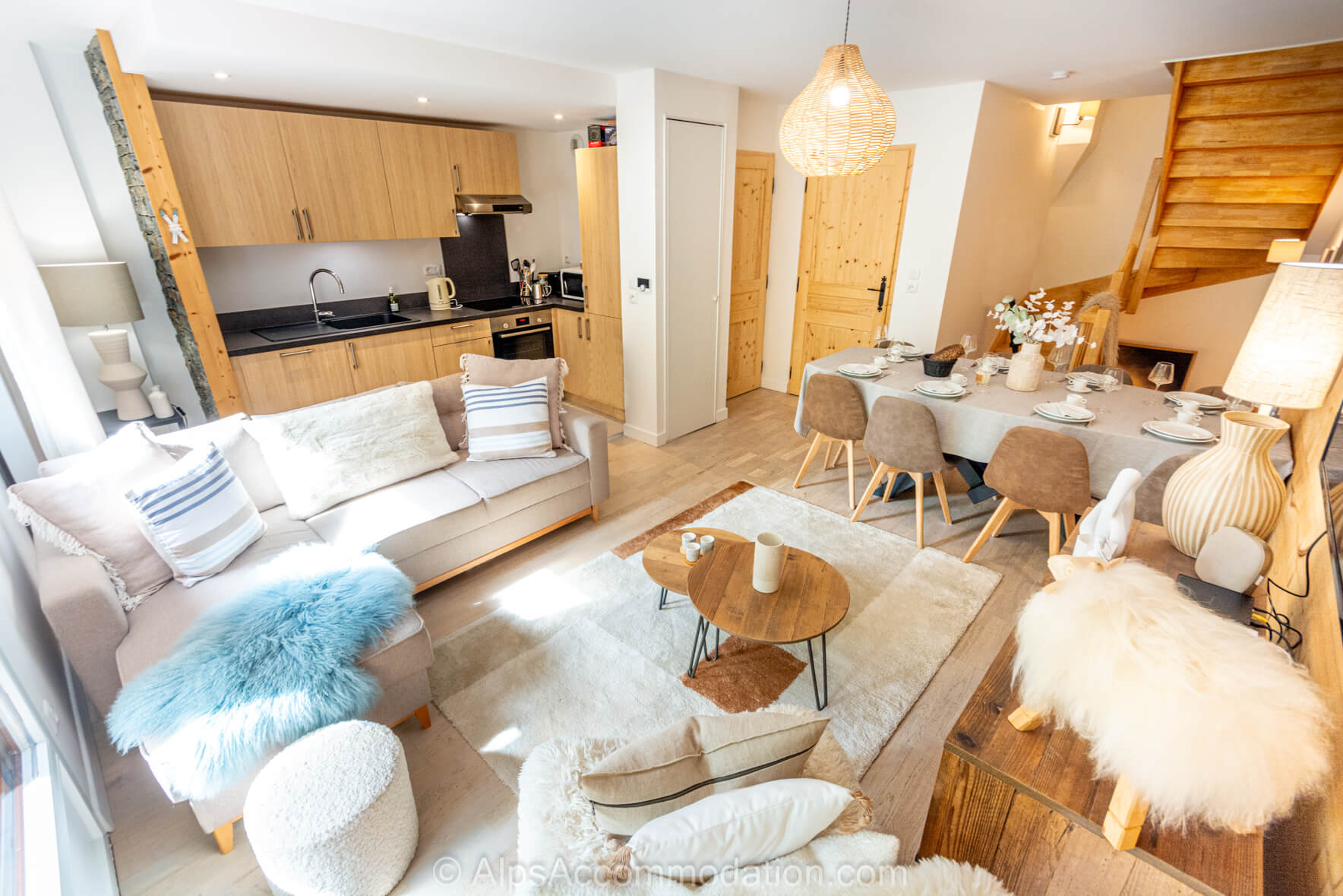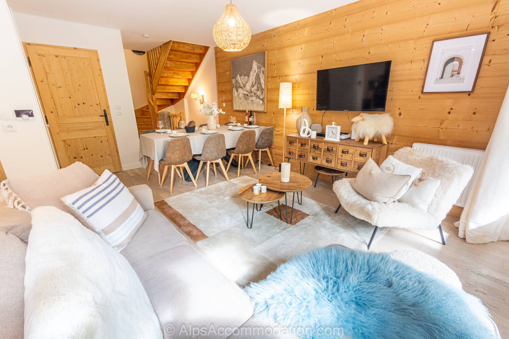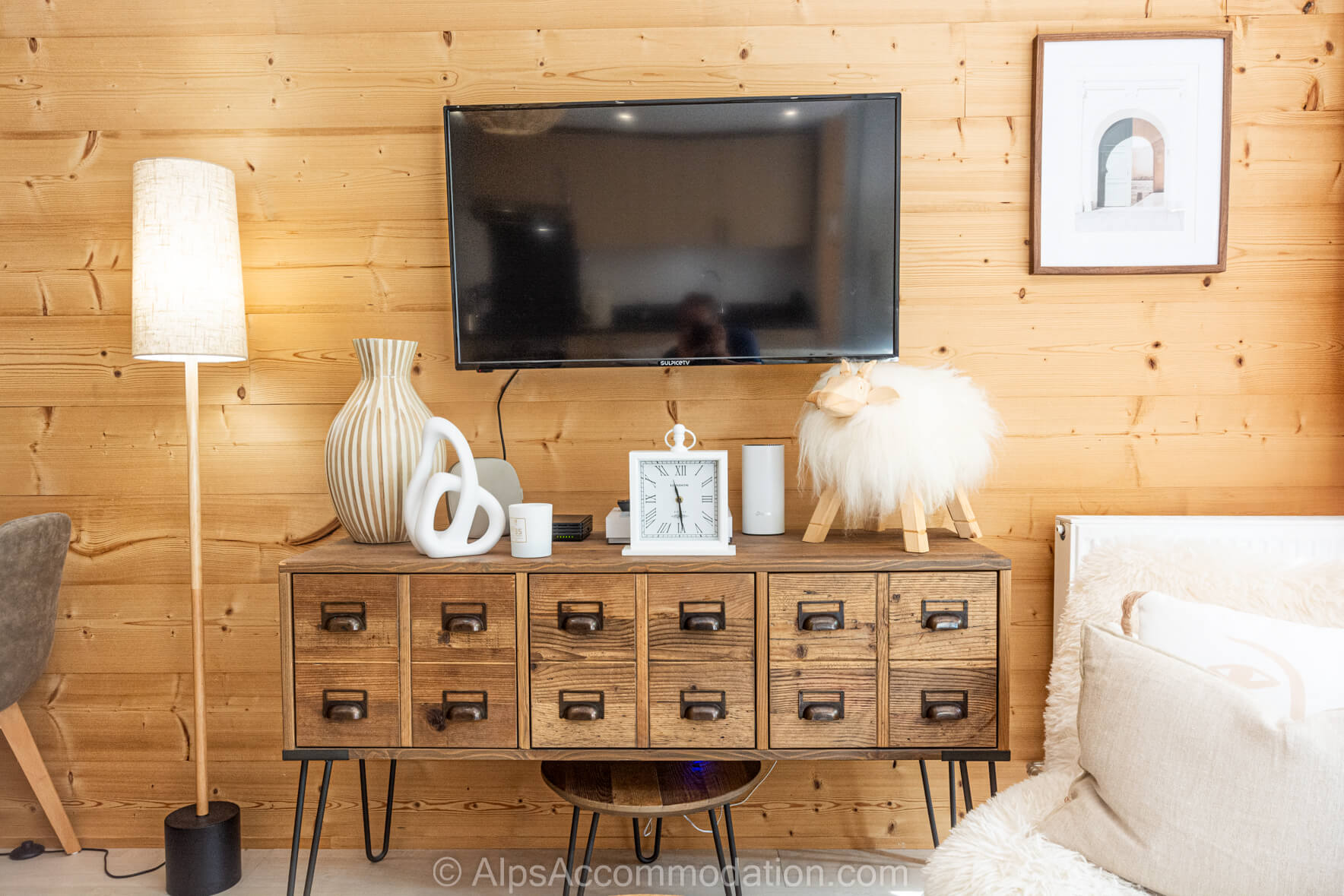 L’accueillant salon a été soigneusement décoré, avec un canapé et un fauteuil profonds et confortables disposés autour d'une Smart TV, offrant des services de streaming pour des soirées douillettes. Avec un haut-parleur Bluetooth et une connexion Wi-Fi à haut débit également à votre disposition, La Lune du Zac offre tout le nécessaire pour se détendre après une journée d'aventures en montagne.