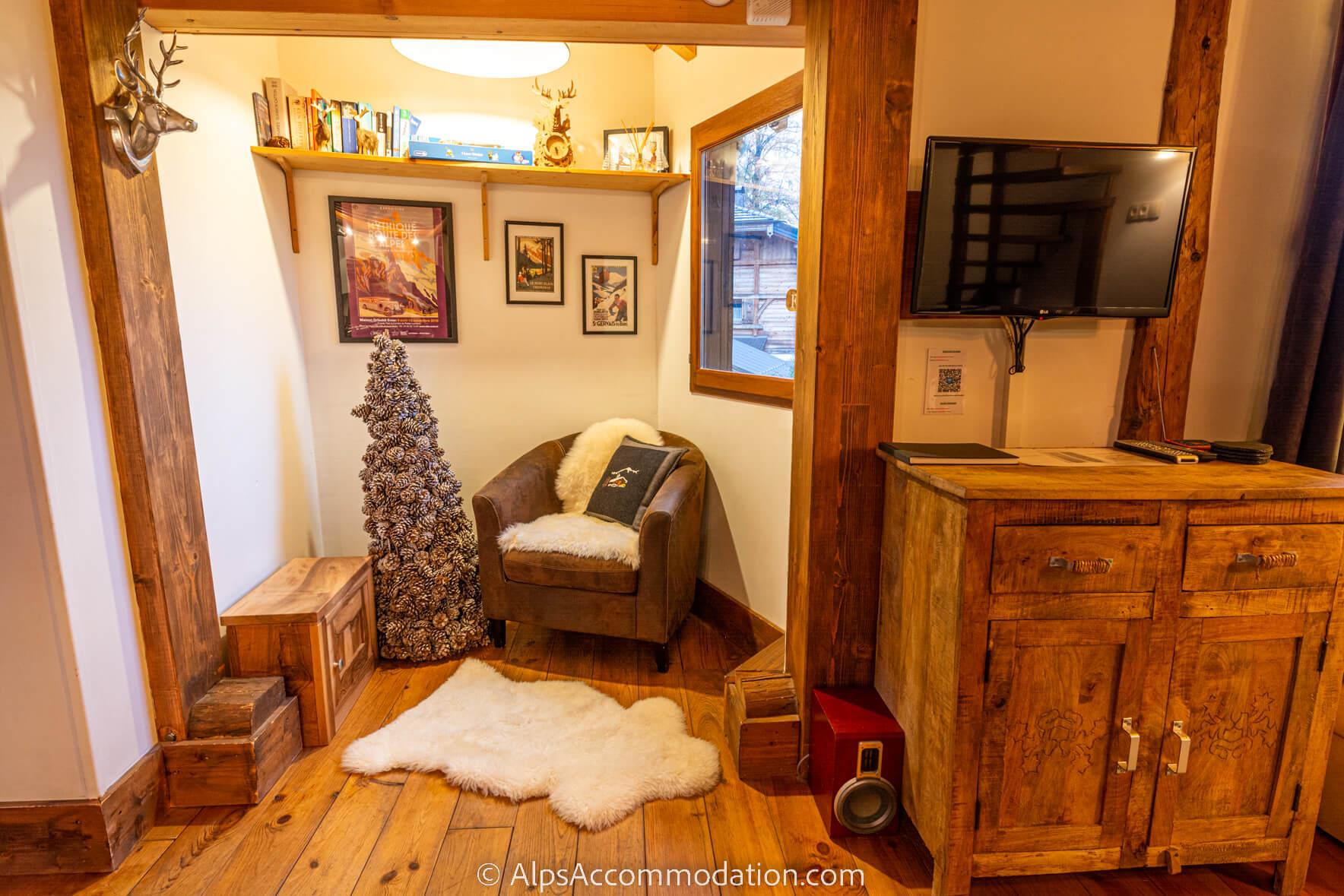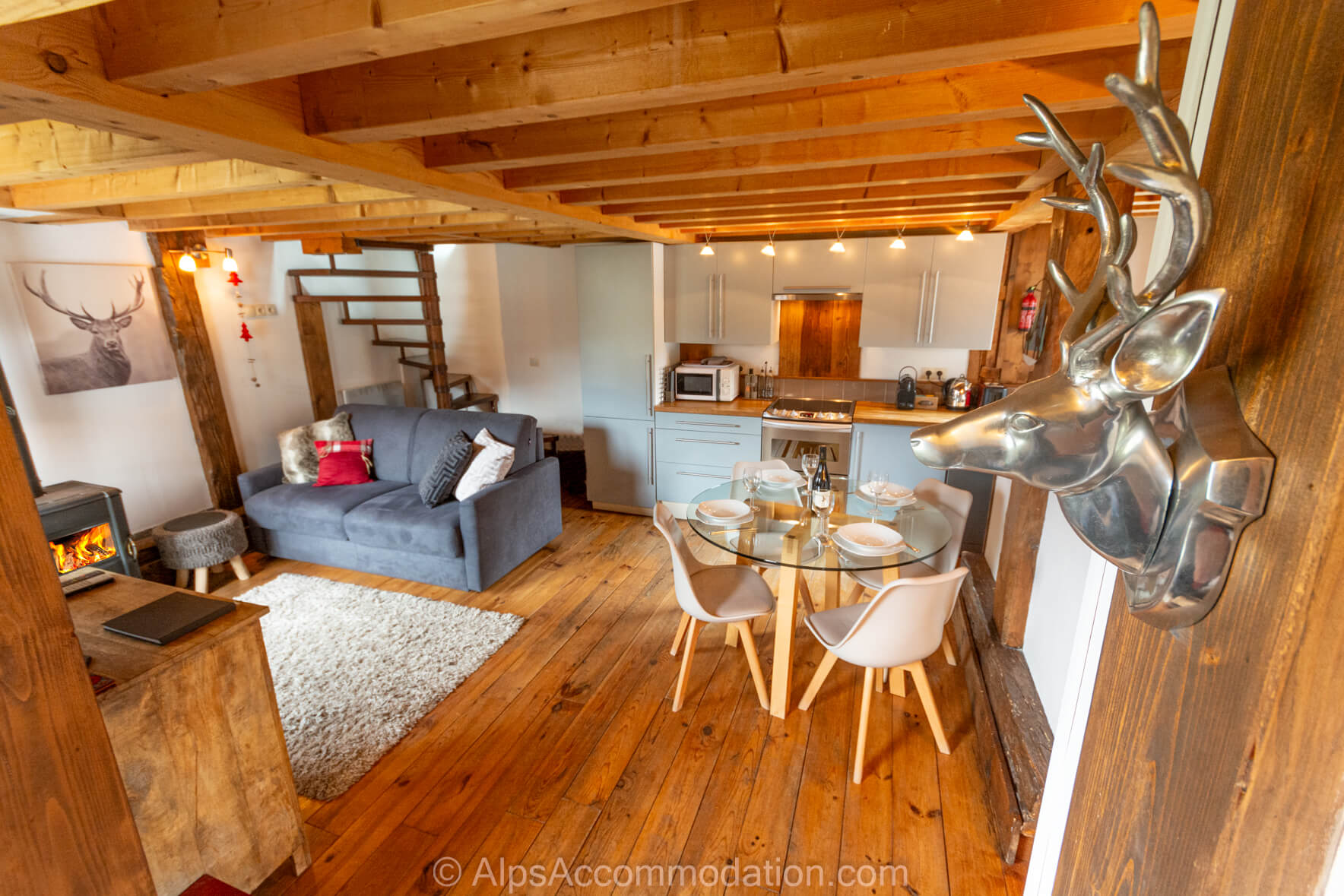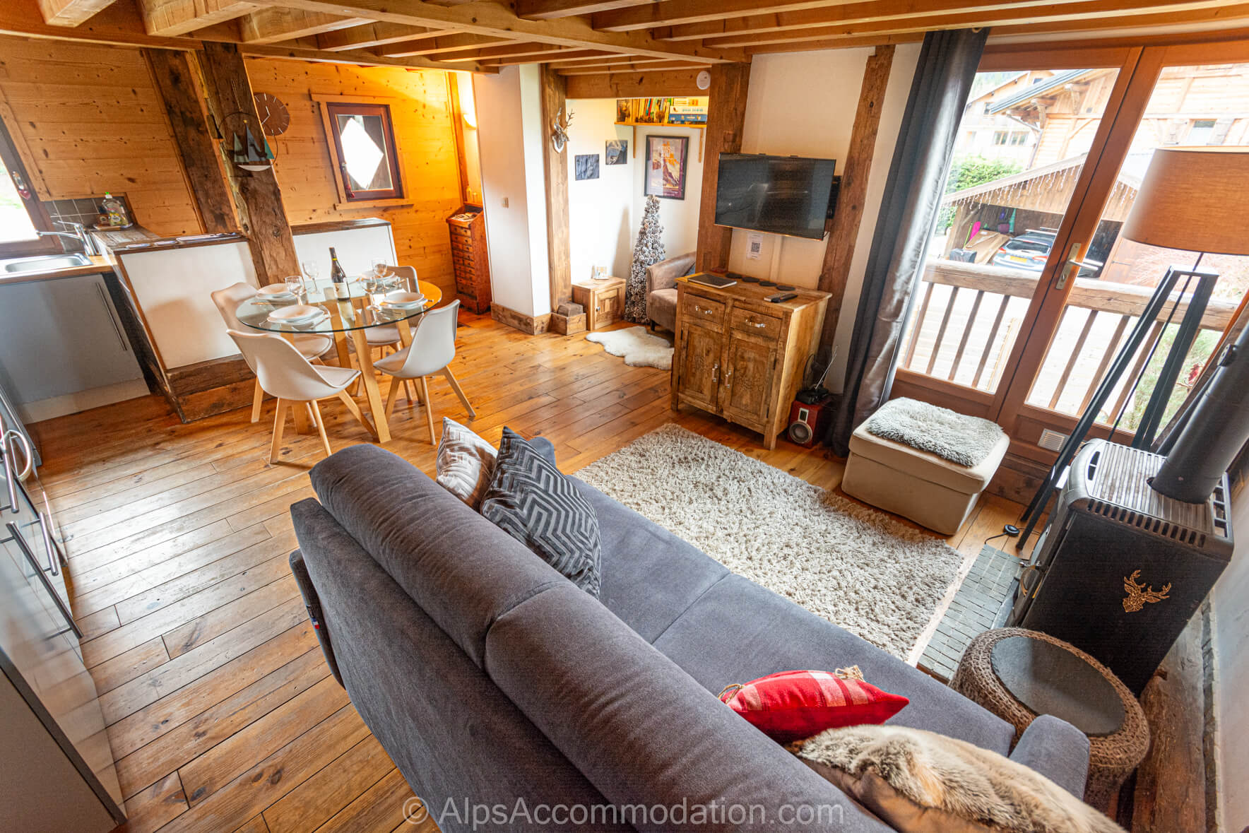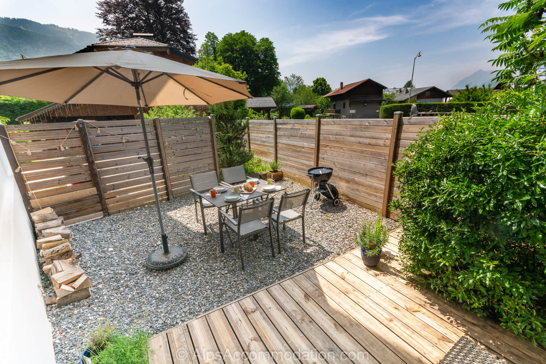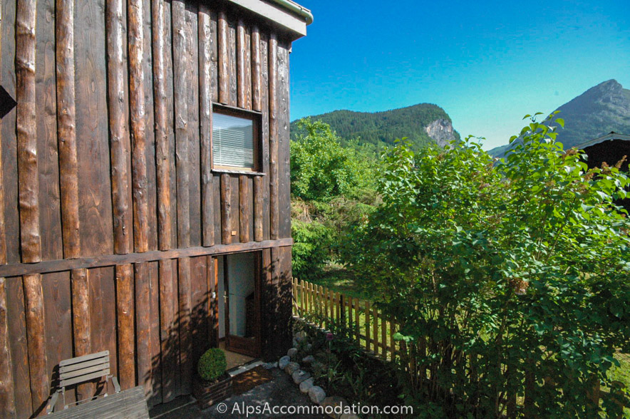 Le Mazot est construit du bois, dans un style Savoyard traditional. Il y a une terrasse où vous pouvez prendre l'apéritif ou le repas - meubles de jardin est fourni avec une table et des chaises, ainsi que 2 chaises longues. Le Mazot offre une barbecue et le parking privé, est à côté du petit chalet. A l'entrée Est du Mazot, il y a une zone de gravier avec un banc, offrant un espace pour profiter du soleil matinal avec une tasse de thé.