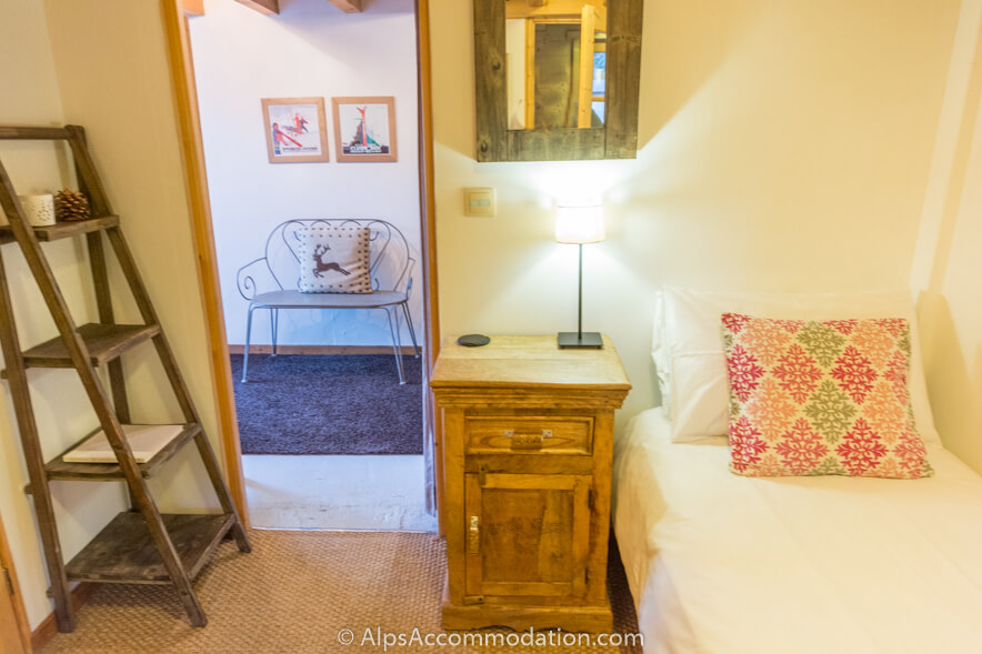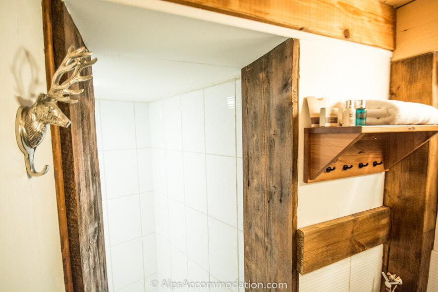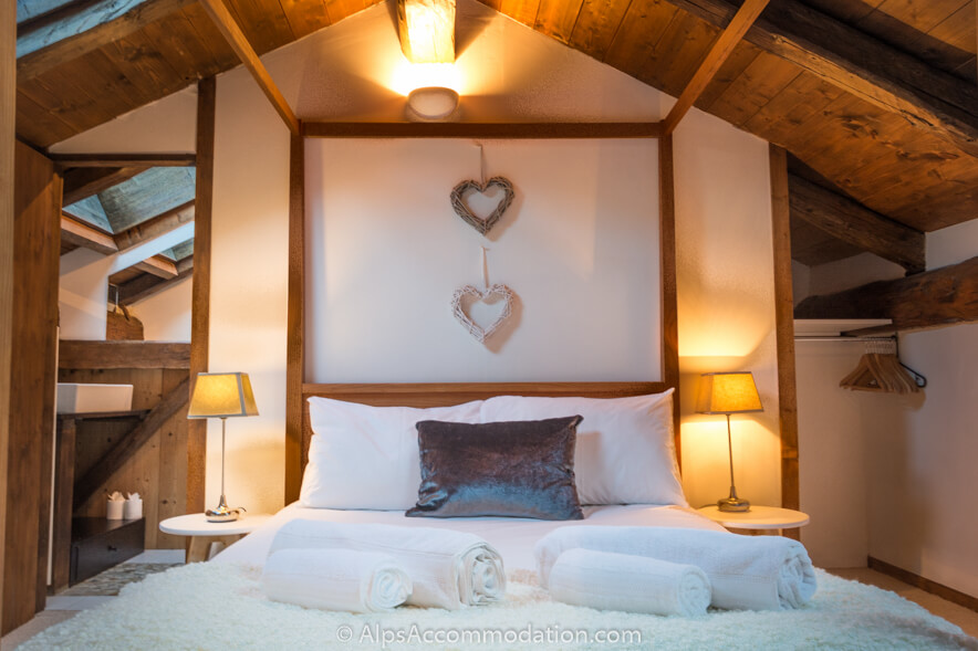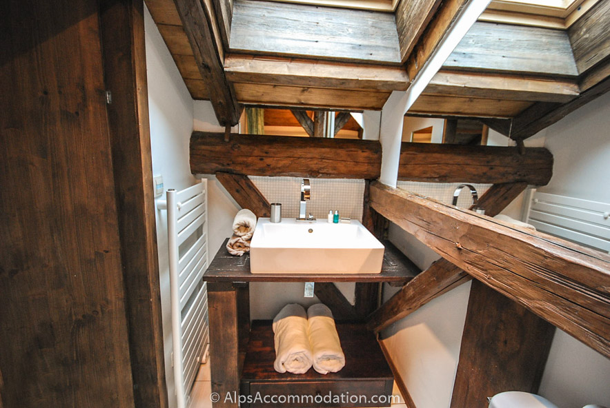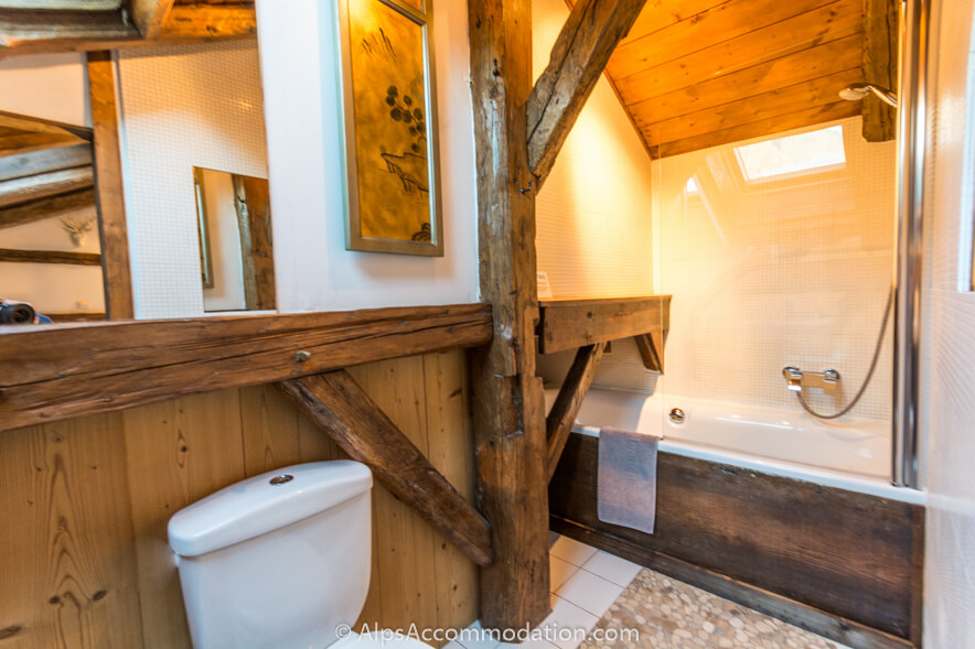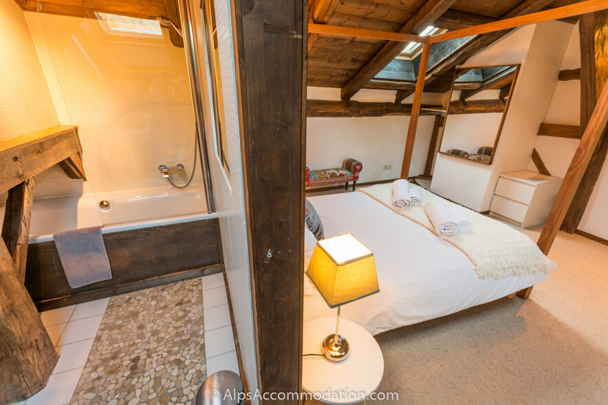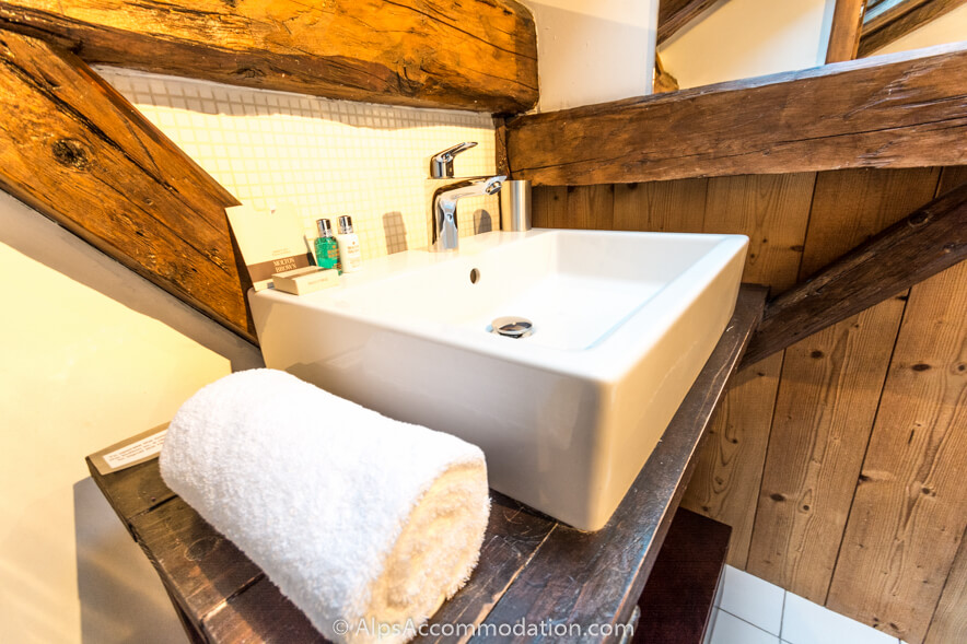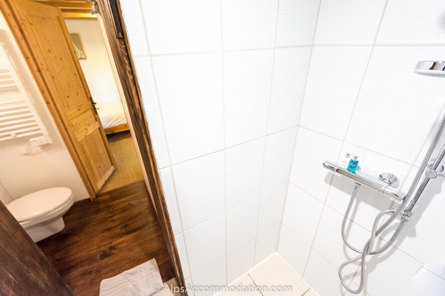 Cette propriété comprend 2 chambres, chacune ayant sa salle d’eau privée, elle peut donc accueillir de 4 à 5 personnes. Chambre no.1, à deux petits lits, est située au rez-de-chaussée. Sa salle d’eau possède une grande douche, lavabo et WC. A cet étage il y a aussi un local avec sauna 2 personnes, une machine à laver et sécher et beaucoup d’espace pour ranger les skis et les vélos en toute sécurité. Un escalier à vis donne accès au 2ème étage où se trouve la chambre principale (No. 2). Cette chambre charmante est double/queen avec un grand lit à baldaquin et une salle de bain équipée avec une grande baignoire, douche, lavabo et WC. Il y a de l’espace pour ranger les vêtements dans les placards dans les rampants. Nous fournissons une sélection de produits "Faith in Nature" et "Occitance" dans chaque salle de bain.