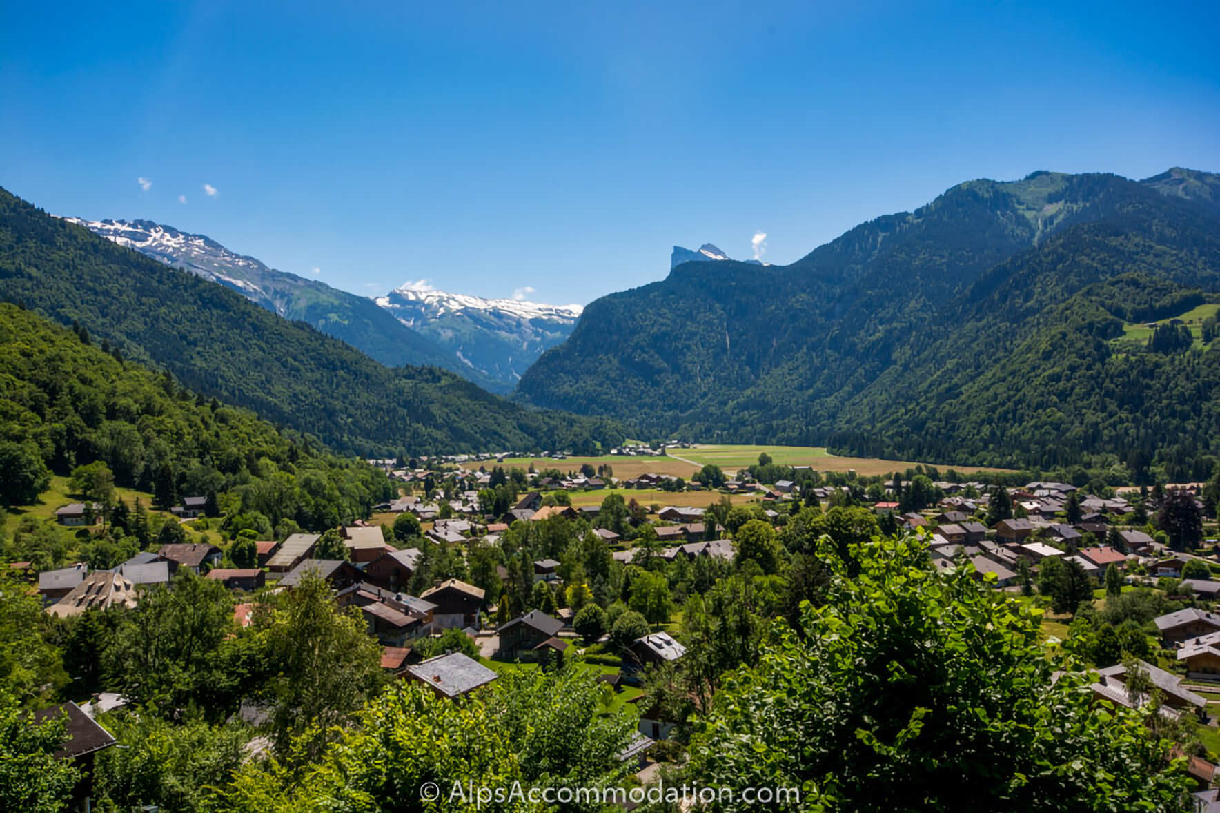 Lou Cardinales bénéficie d'un emplacement incroyablement pittoresque perché à flanc de montagne au-dessus du village de Samoëns, dominé par l'emblématique montagne du Criou. Il offre une vue magnifique sur le village, la Cascade du Nant d'Ant et le domaine skiable du Grand Massif au-delà.