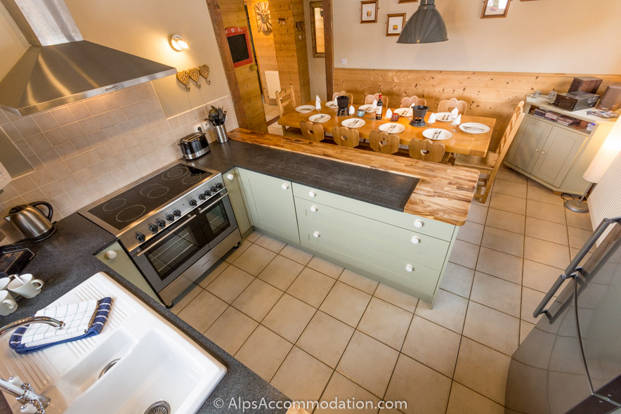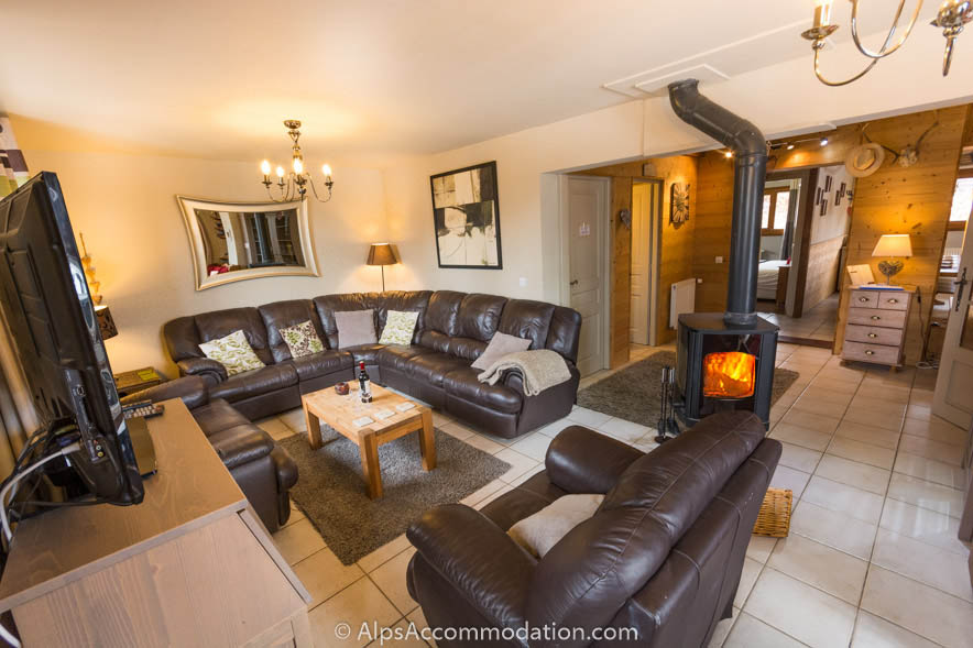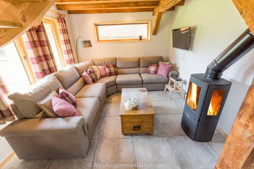 En entrant dans Chalet Petit Cœur, vous pénétrez dans une impressionnante pièce open-plan comprenant séjour, salle à manger et cuisine. Le chaleureux poêle à bois en est le point central, tandis qu’en face, un canapé en L avec repose-pieds télécommandés ajoute une touche de luxe, idéal pour se détendre après le ski ! Un téléviseur avec récepteur satellite est là pour vous divertir ainsi que des enceintes Sonos haut de gamme et la Wi-Fi.