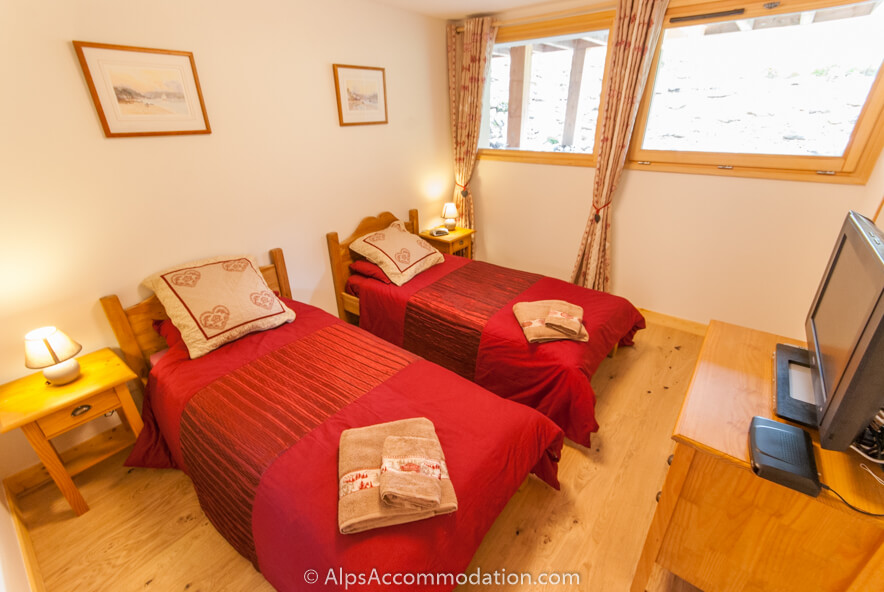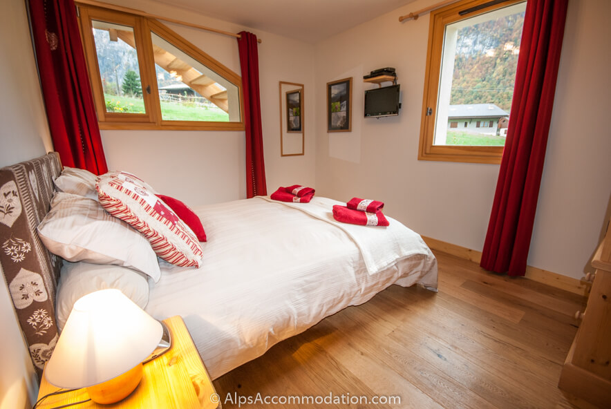 L’Appartement La Tibolire comprend 2 chambres, decorées dans un style luxe-acceuillant, bien conçu par les propriétaires qui désiraient de vous offrir de l’espace plus généreux qu’on trouve généralement aux chambres-alpins du région. Chambre No 1 possède un grand lit (taille“reine”), garde-robe et commode, donc assez de l’espace de rangement. Vous trouverez de l’espace à vêtements en plus au chambre No 2 - elle possède deux lits et une grande commode. Chaque chambre est fourni avec télévision, lecteur de DVDs, parabole satellite TV, radio réveille-matin. Donc, tout ce qu’il vous faut!