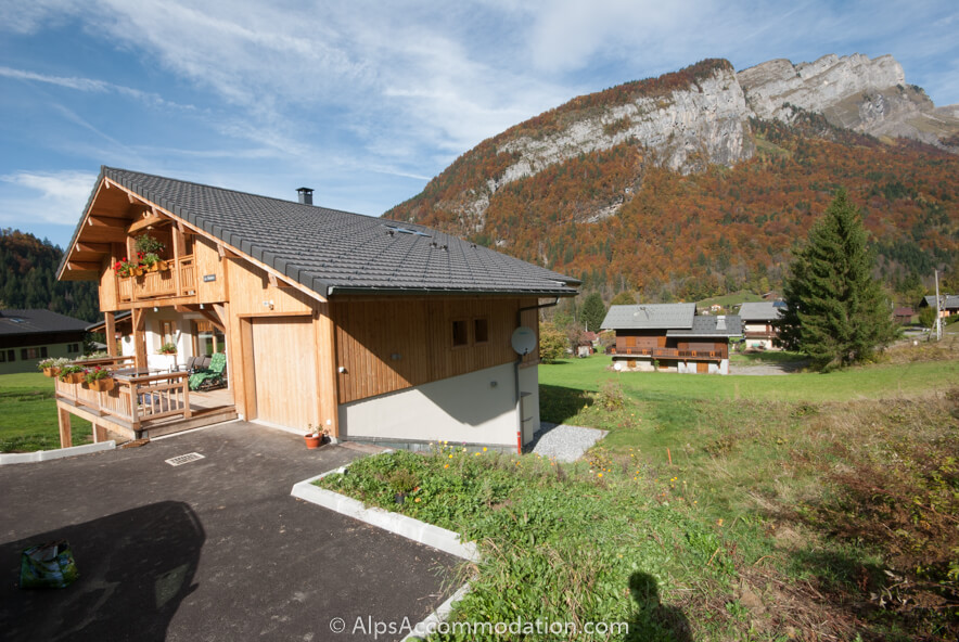 L’appartement possède un jardin privé - avec des vues extraordinaires vers le village de Sixt-Fer-à-Cheval, direction Nord, des falaises enormes, et, vers la domaine ski, le pic impressionant du Pointe de Sales. Ce chalet est situé assez loin des logements voisinages, donc on a l’impression d’être seule, avec les montagnes! Il y a un parking privé pour nos clients, et, au bout de l’allée, des espaces parking additionels.