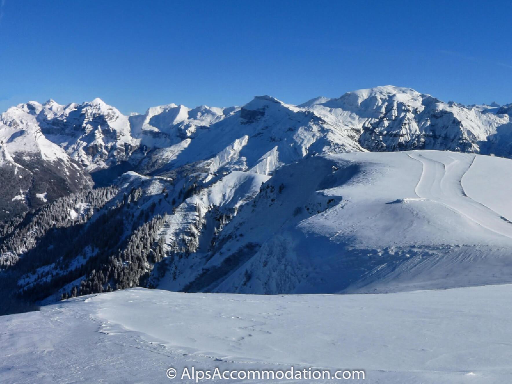 Dans le secteur de Samoëns, la majorité du ski se fait sur des pentes orientées au nord, entre 2120m et 1600m d'altitude. Lorsque les conditions d'enneigement le permettent, il est possible de descendre la piste rouge Grand Crêt jusqu'au hameau de Vercland, à 800 m d'altitude. Une descente de 1320 m de dénivelé !